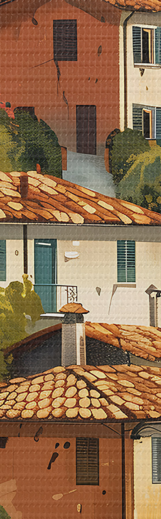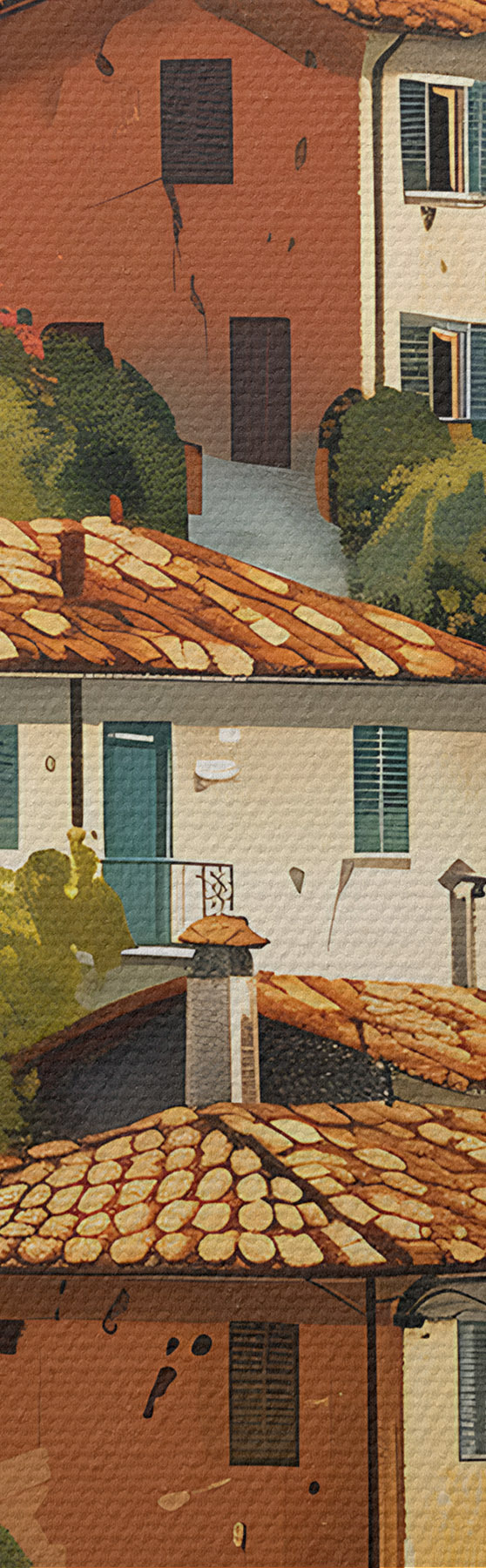 Maalid Vahemere mäenõlvadel asuv küla, soojatoonilised majad terrakotta katustega Nr s47950