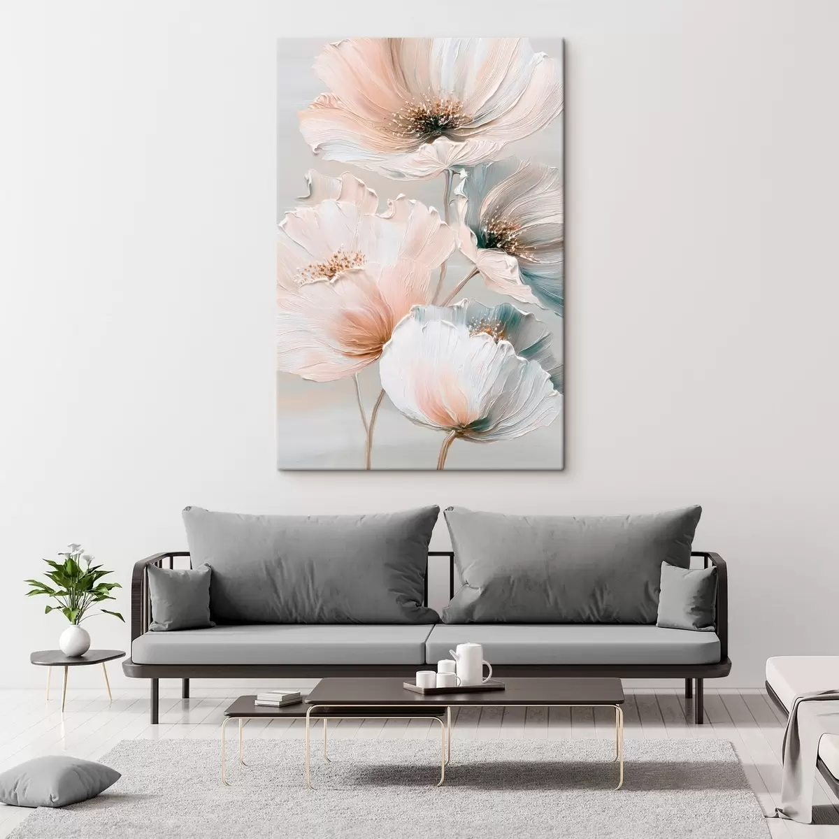 Maalid Lilleline kompositsioon tekstuuriga pintslitõmmetega beež-roosa värvipalettis Nr s47961