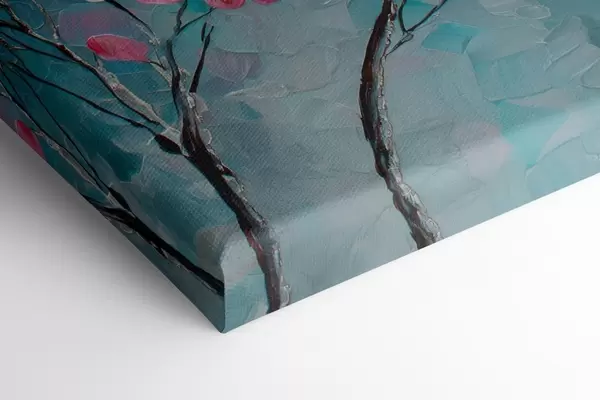 Maalid Sinisel taustal roosade õitega oks õlimaalistiilis Nr s47987