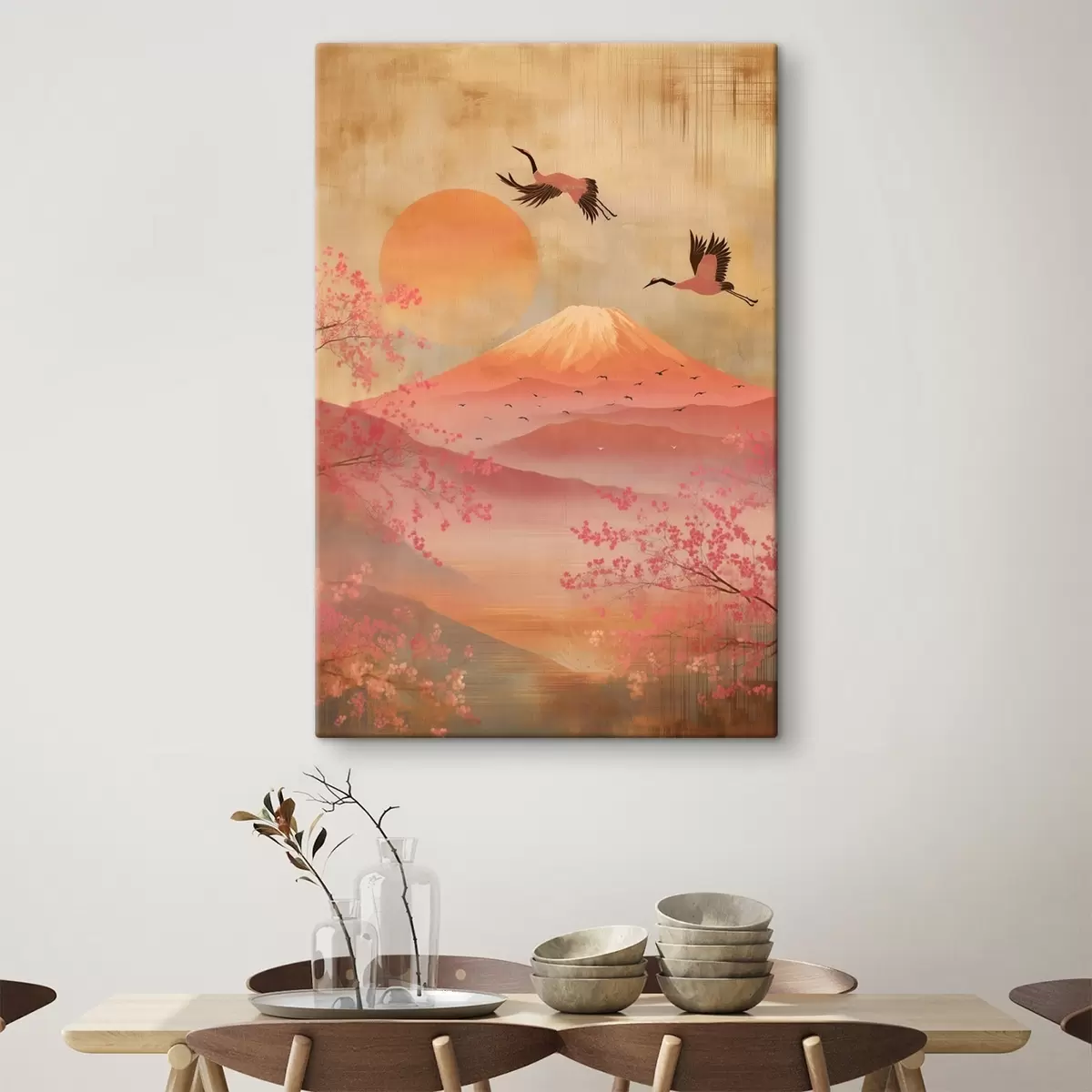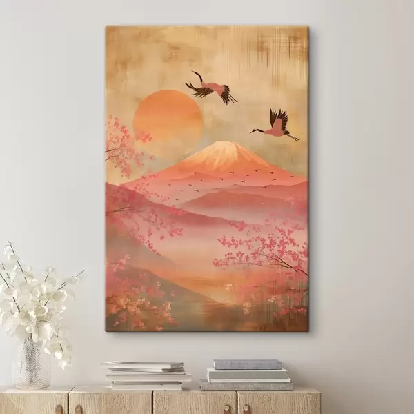 Maalid Kraanad päikese ja mägede taustal: illustratsioon digitaalkunstistiilis Nr s47992