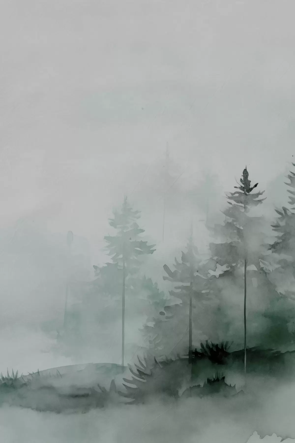 Maalid Metsas kasvavad kuused, akvarellimitatsioon Nr s47998