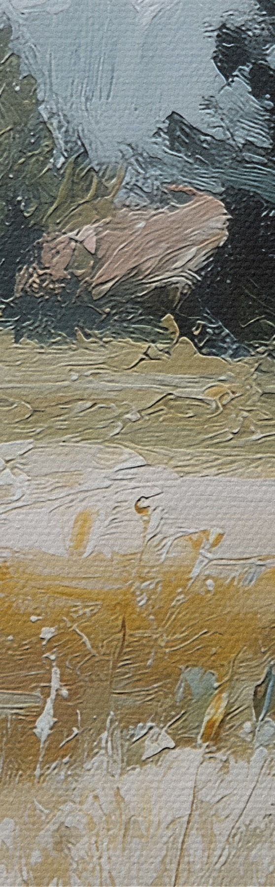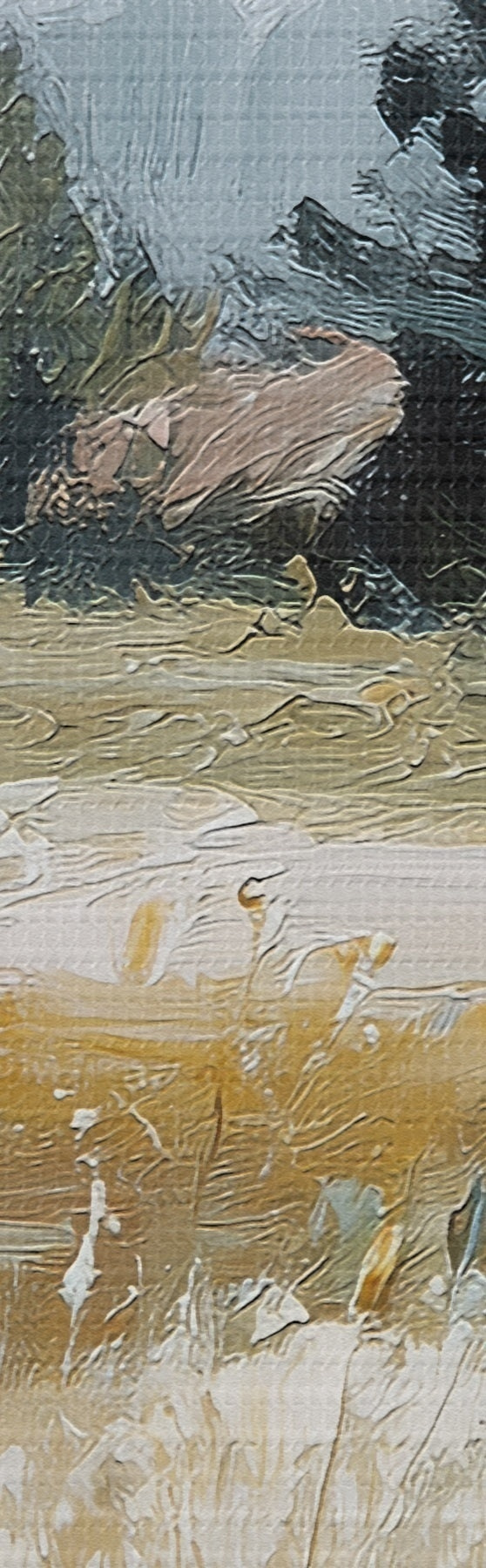 Selle lõuendi peenike niidipunus meenutab professionaalse kunstniku lõuendi pinda.