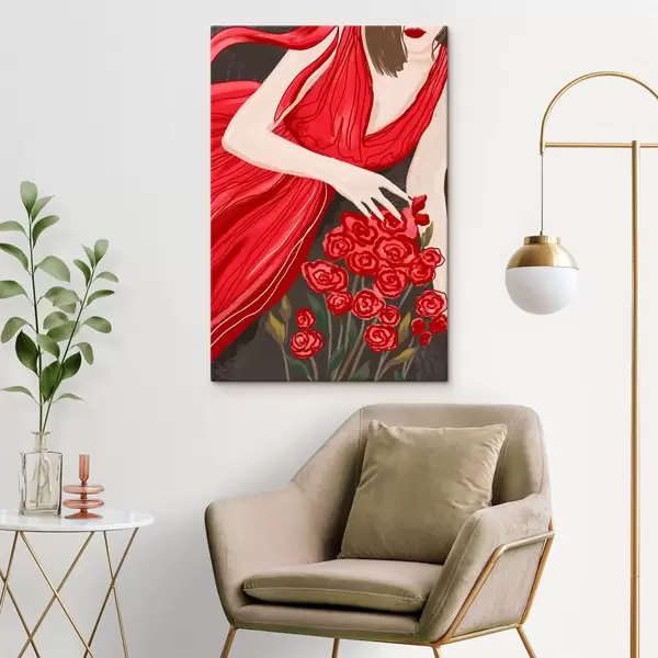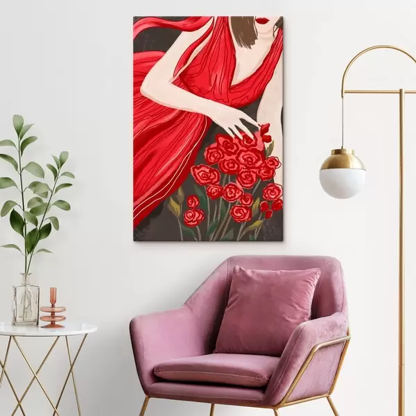 Maalid Naine punases kleidis roosikimbuga Nr s48026