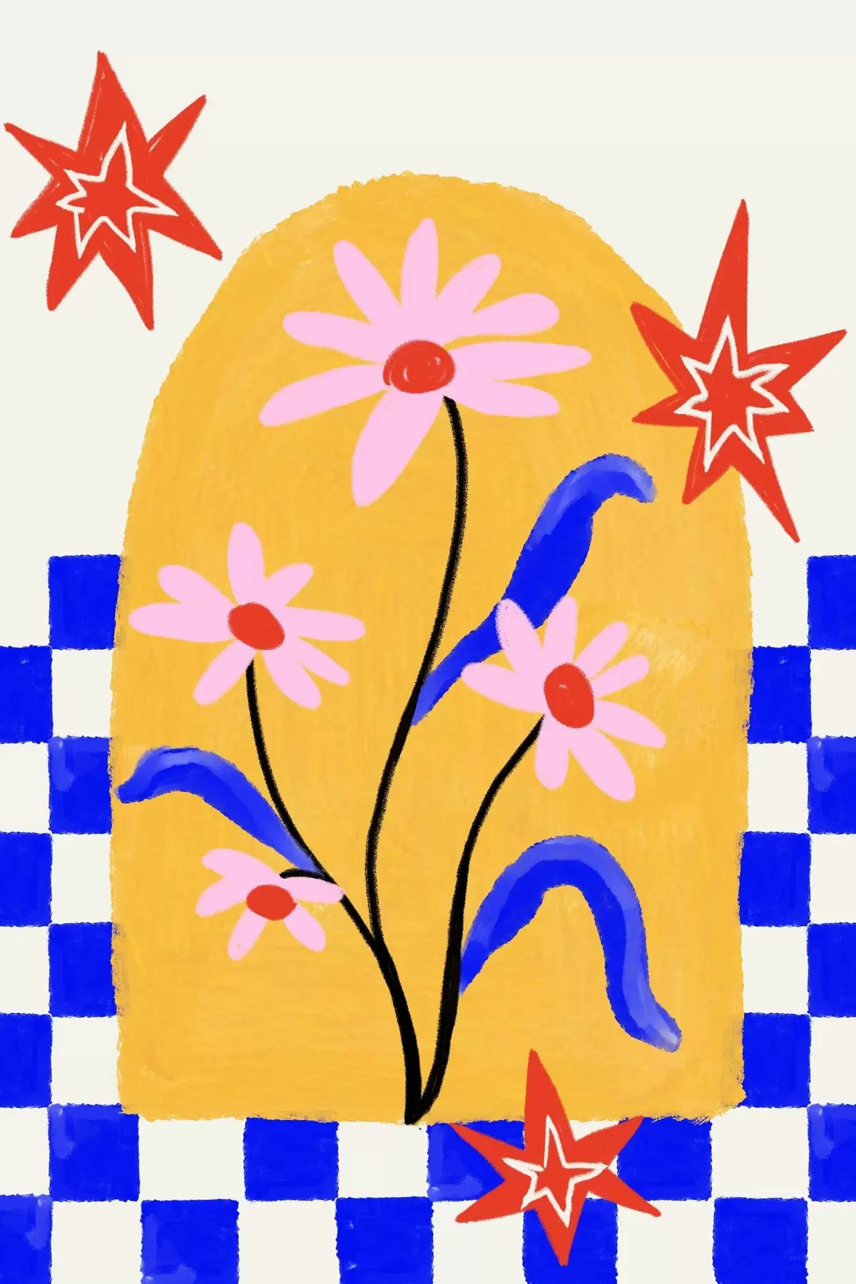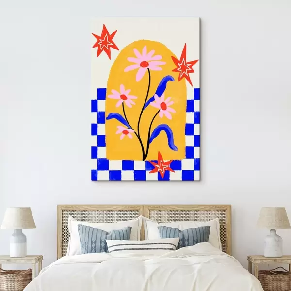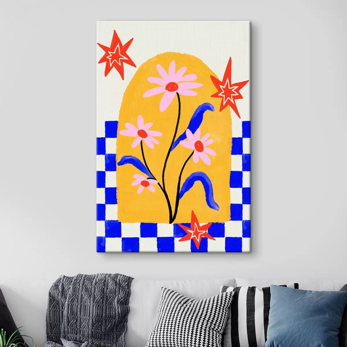 Maalid Ere värviga lilled kollasel taustal sinise mustriga Nr s48034