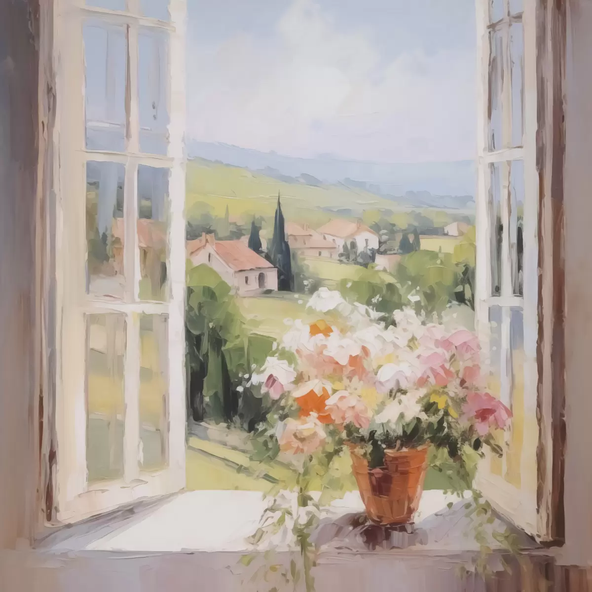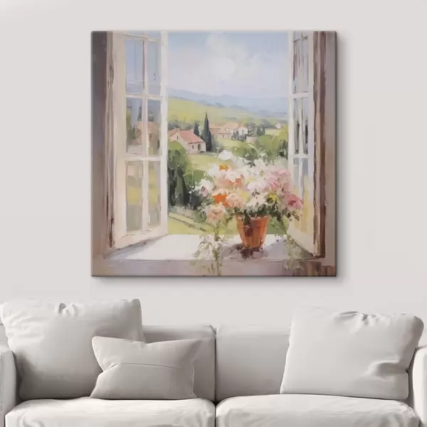 Maalid Lillede kimp vaasis akna ääres Nr s48052