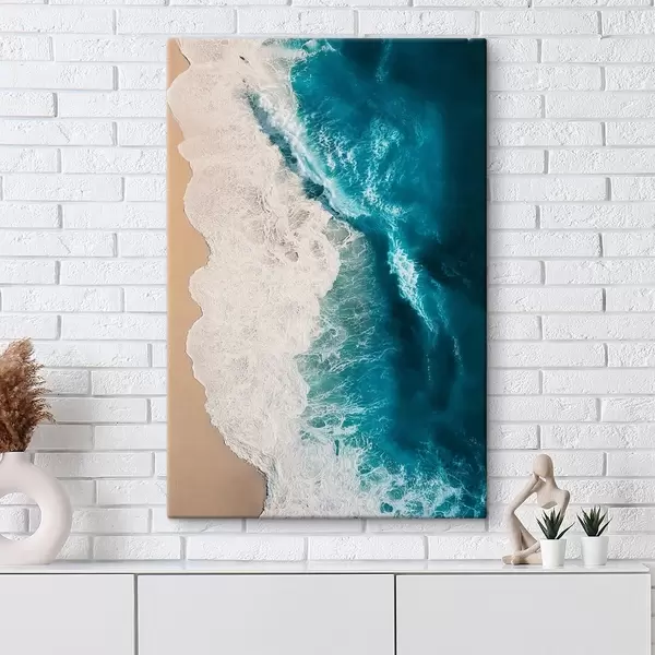 Maalid õhust vaade ookeani lainetele, mis kohtuvad liivarannaga Nr s48062