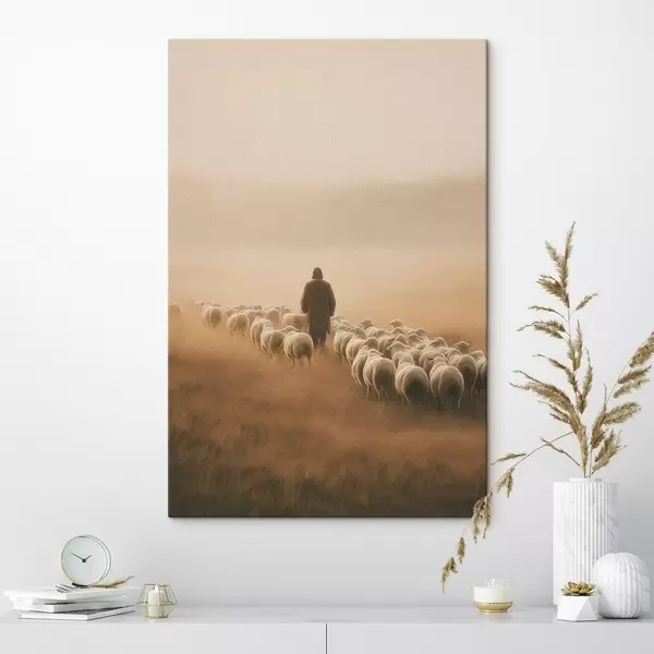 Maalid karjane kõnnib lambakarjaga avatud väljal Nr s48077