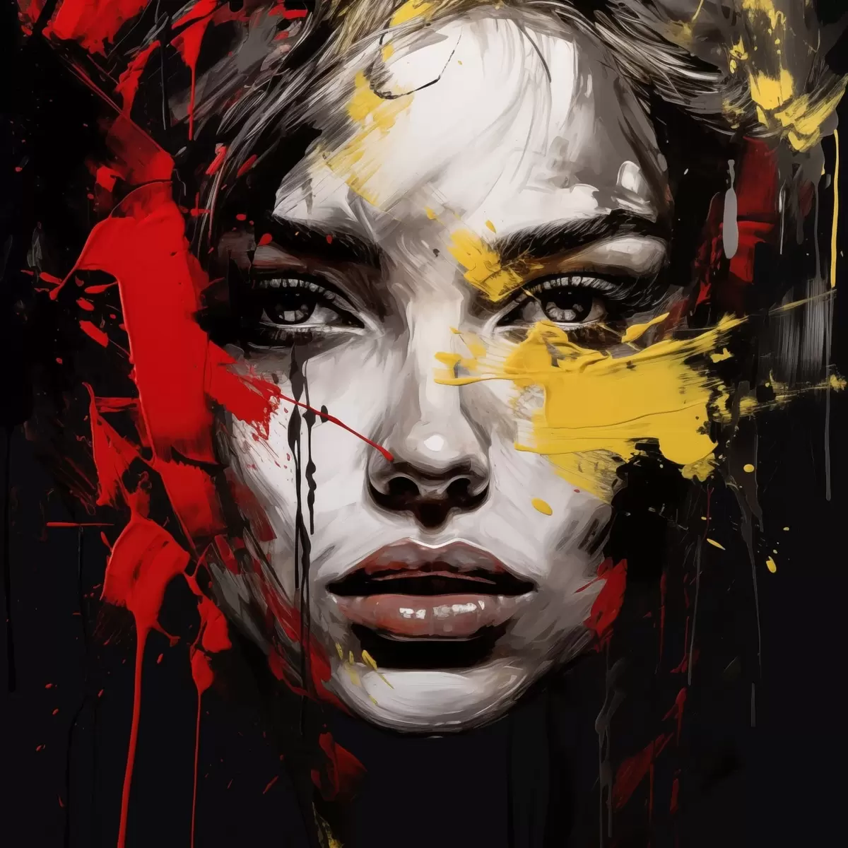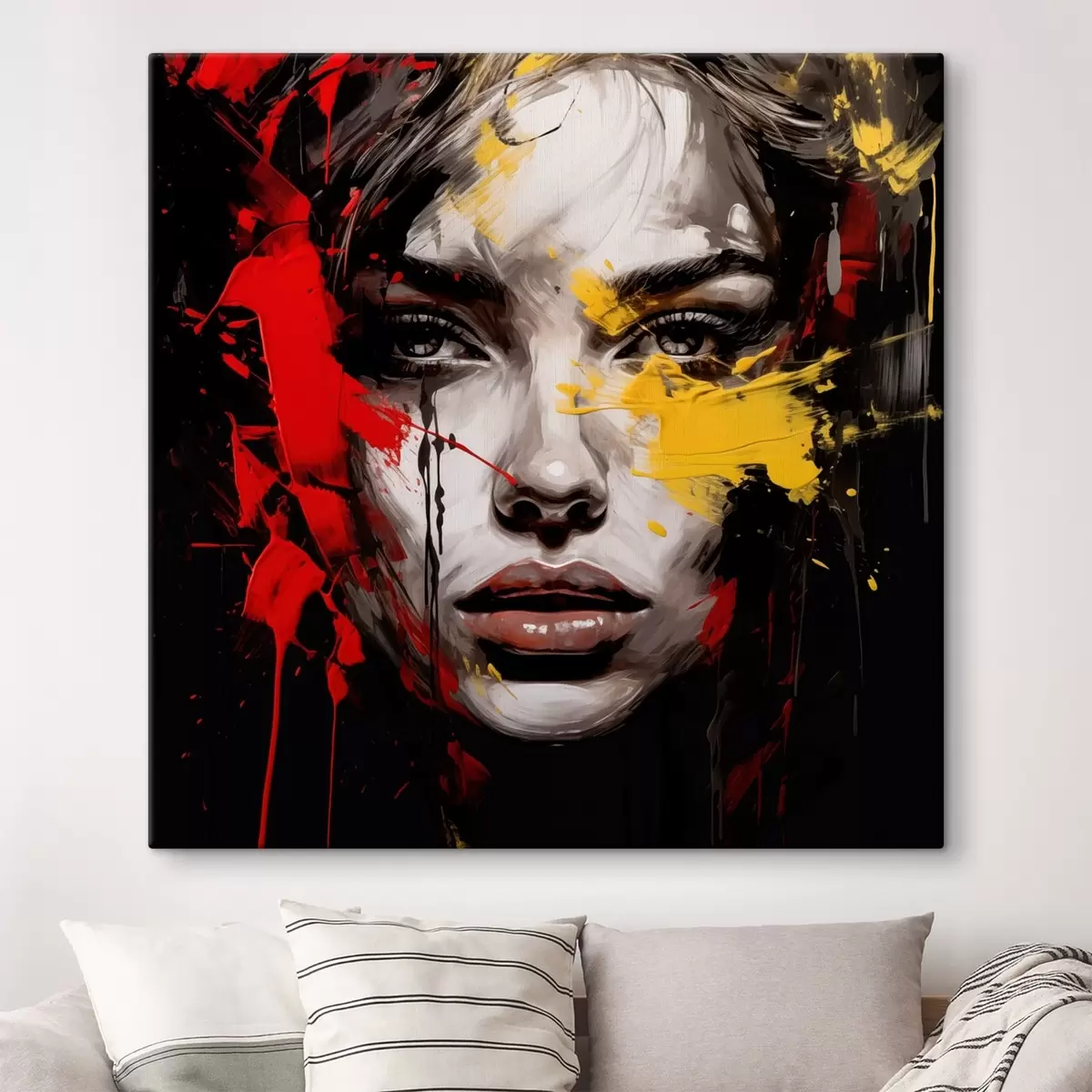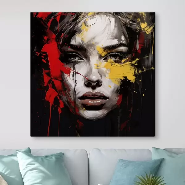 Maalid Naise portree punaste ja kollaste joontega Nr s48089