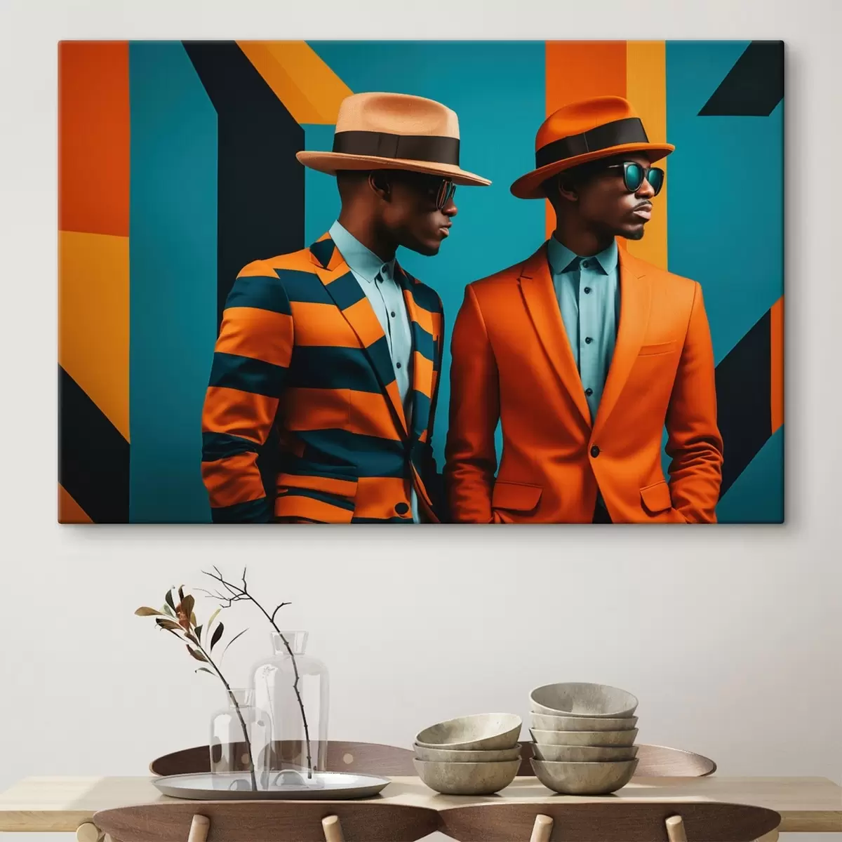 Maalid Kaks meest ereda värvi ülikondades ja kübarates Nr s48091