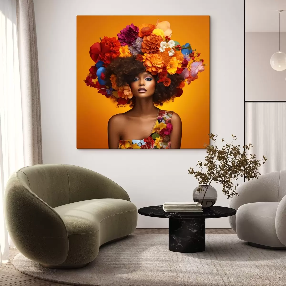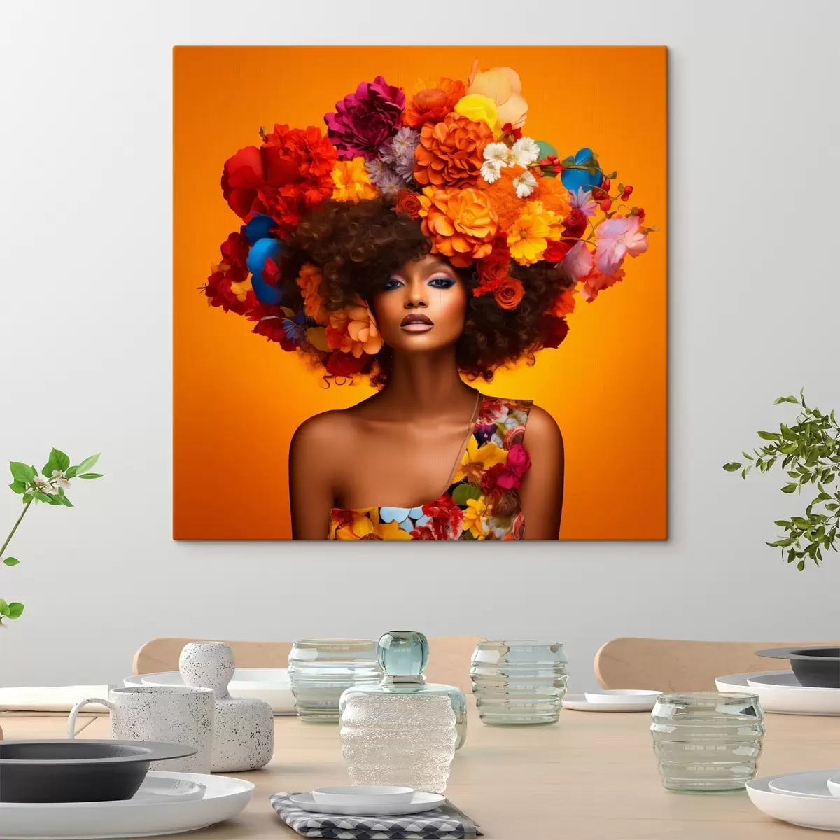 Maalid Naine lilleseadega oranžil taustal Nr s48102