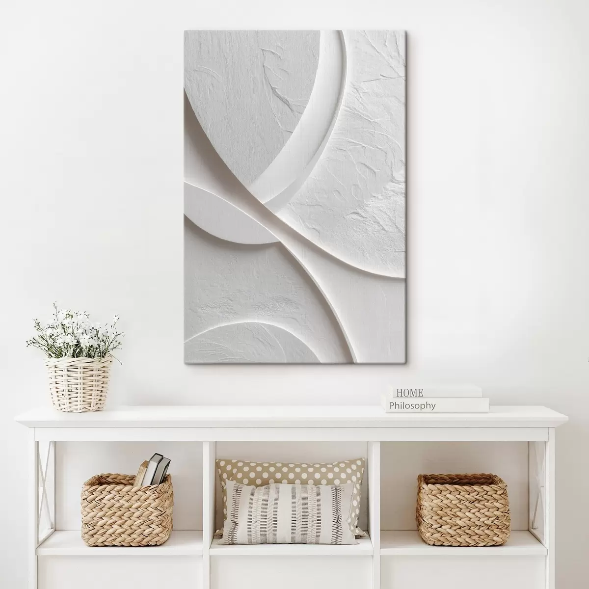 Maalid Dekoratiivpaneel, millel on sujuvad jooned ja kivimustriga tekstuur heledal taustal Nr s48192