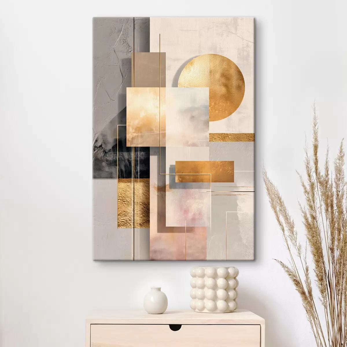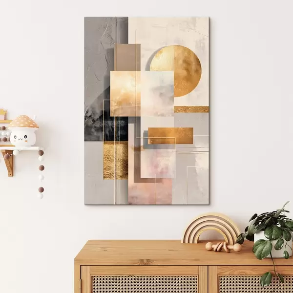 Maalid Dekoratiivne kompositsioon, milles on kasutatud ristkülikuid ja ringi soojades beeži- ja pruunitoonides Nr s48196