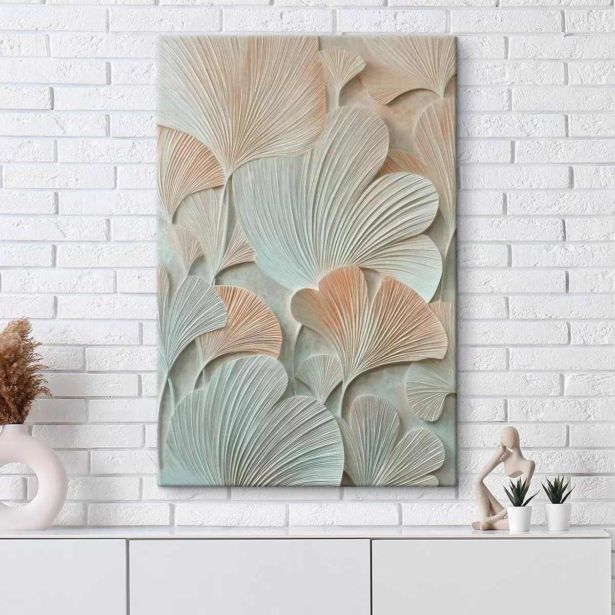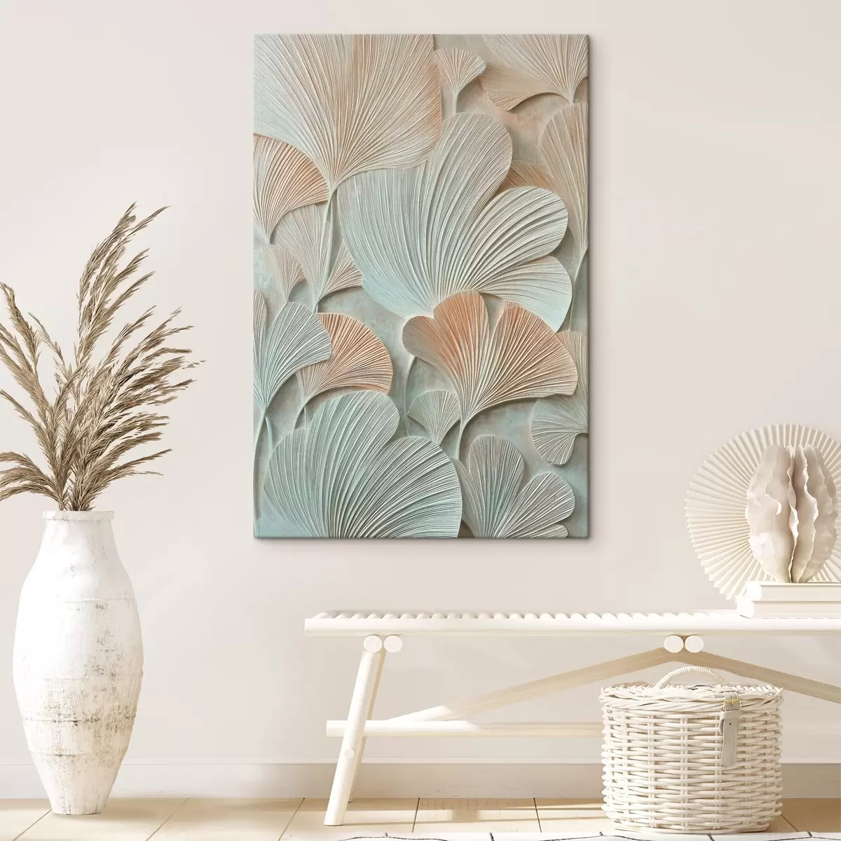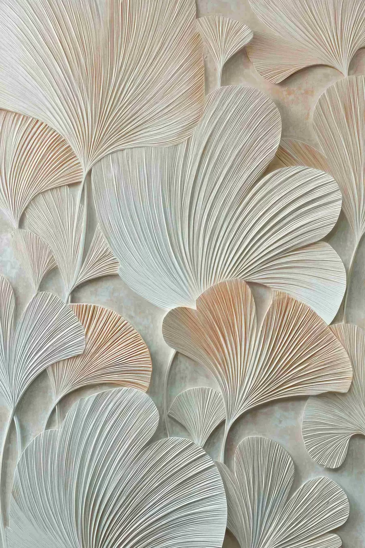 Maalid Stiliseeritud hõlmikpuu lehed, millel on ruumiline tekstuur pastelltoonides Nr s48209