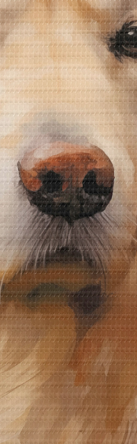 Selle lõuendi peenike niidipunus meenutab professionaalse kunstniku lõuendi pinda.