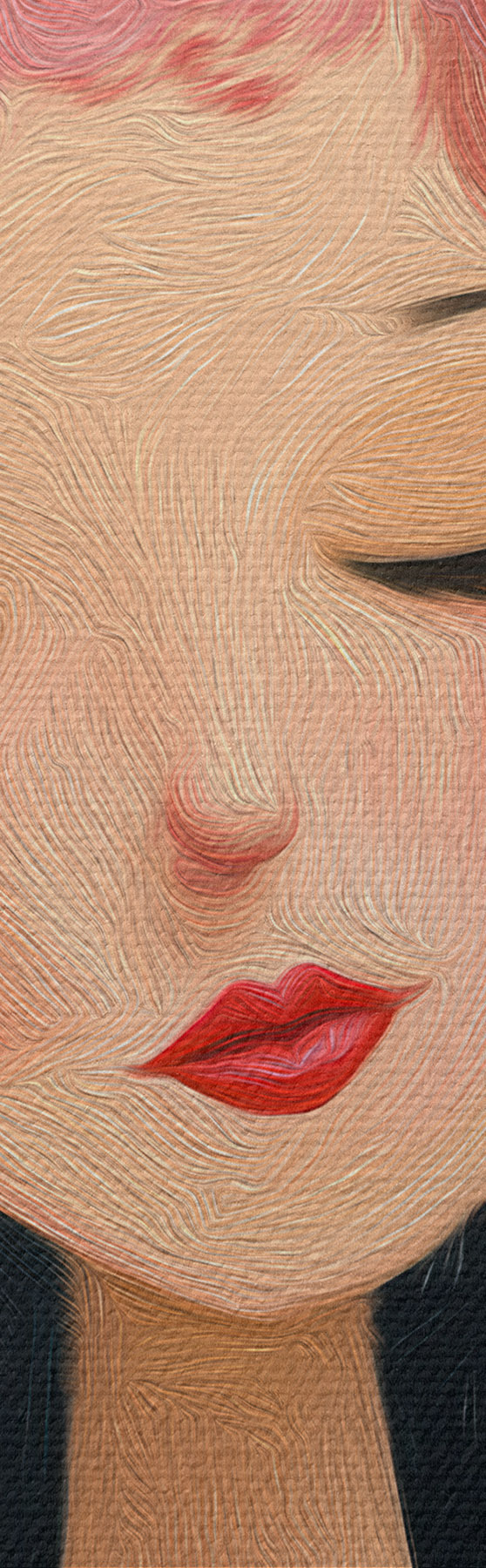 Selle lõuendi peenike niidipunus meenutab professionaalse kunstniku lõuendi pinda.