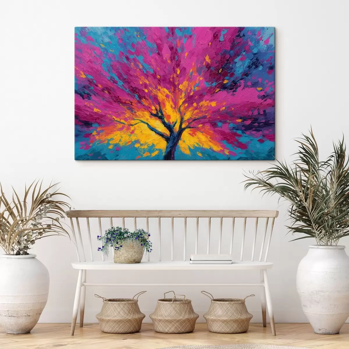 Maali võib riputada kohe pärast selle kättesaamist. Maal on pingutatud 2 cm laiusele puidust kandikule.