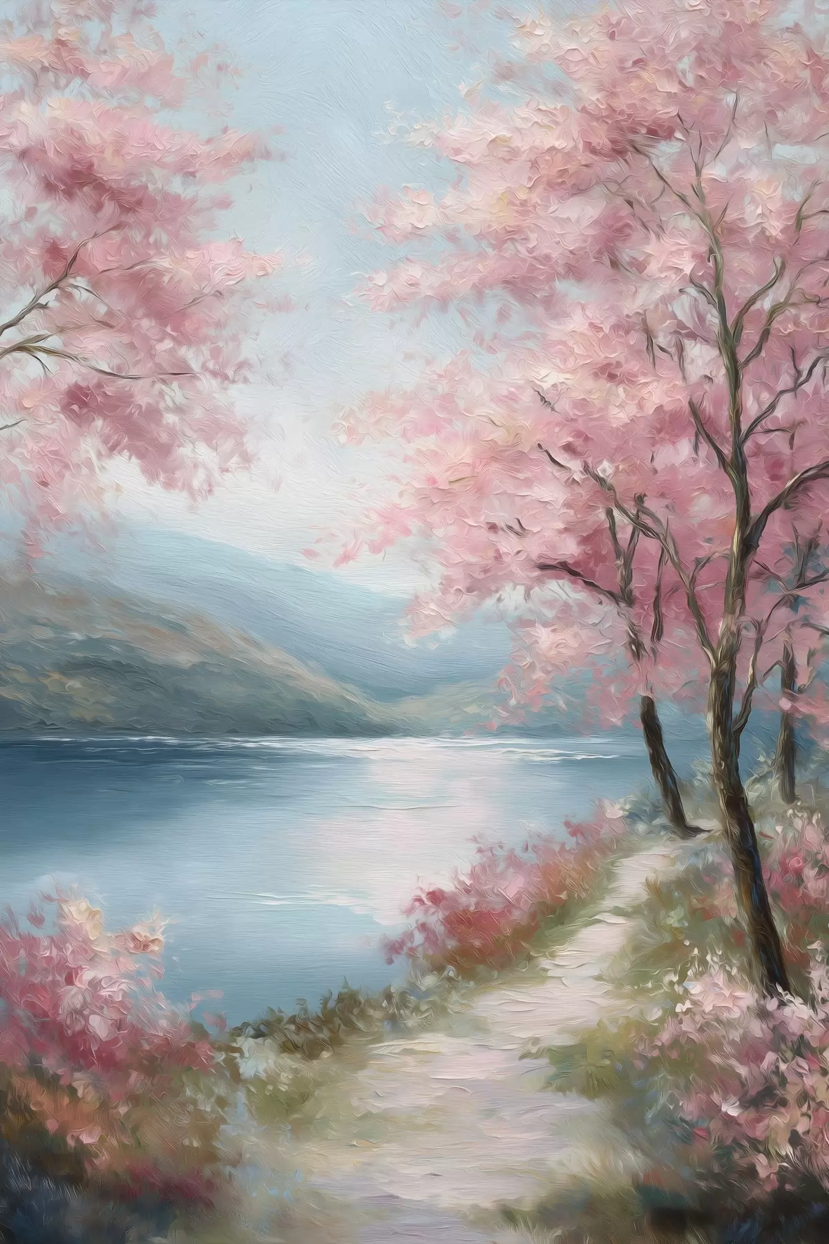 Maalid roosade puudega maastik õlimaalistiilis Nr s48289