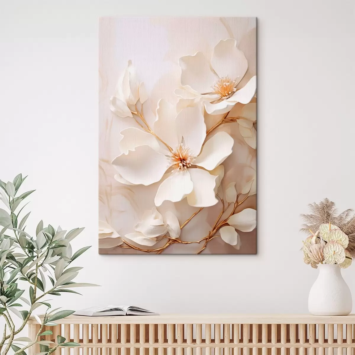 Maalid Pastelltoonidel taustal heledad lilled õhukeste okstega Nr s48348