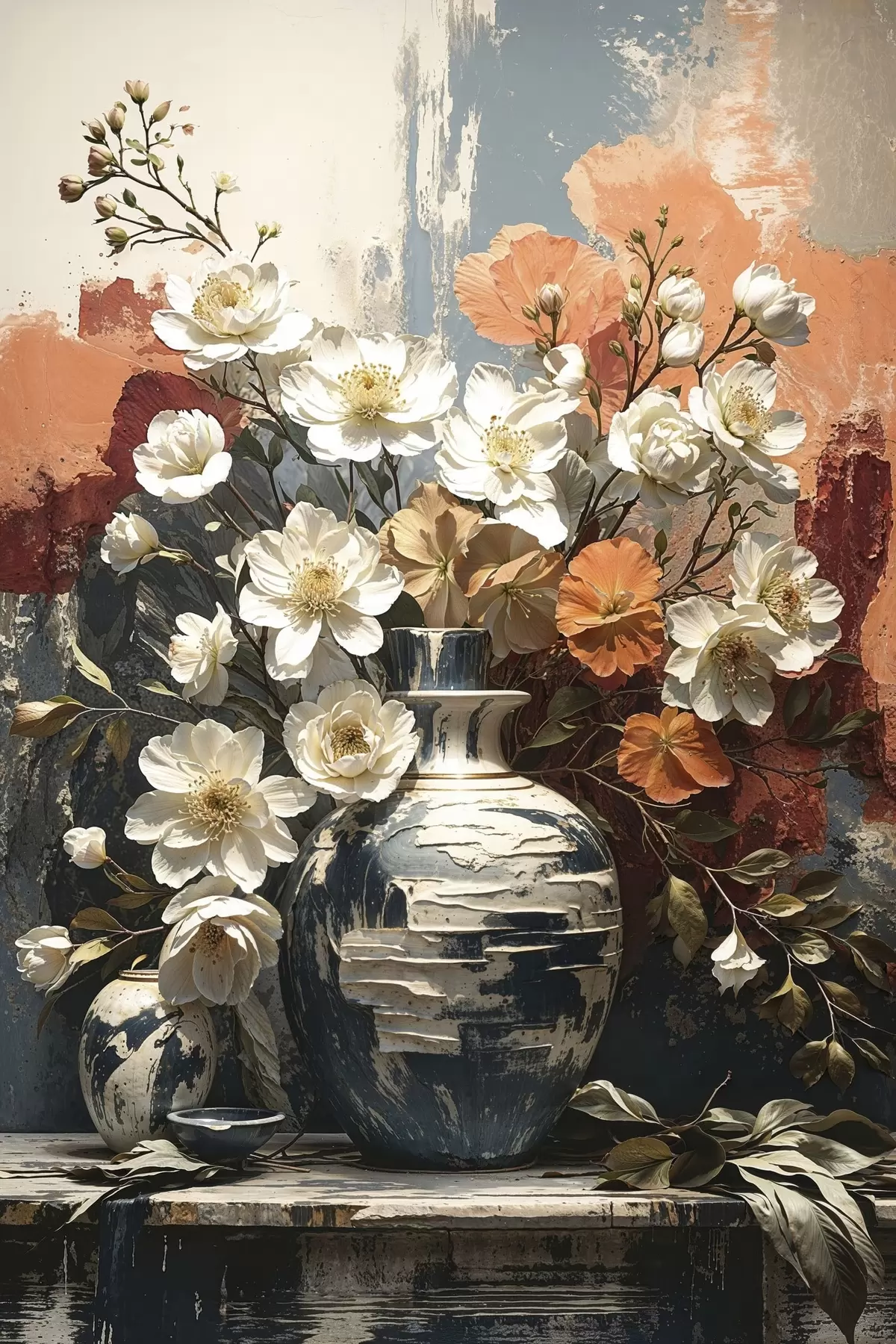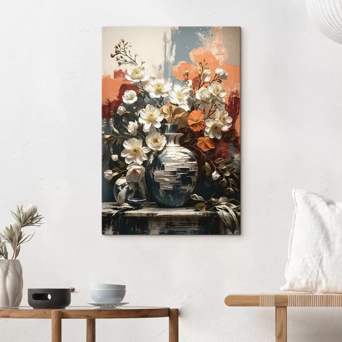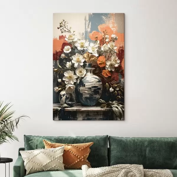 Maalid Lilled vaasides tekstuurse seina taustal Nr s48360
