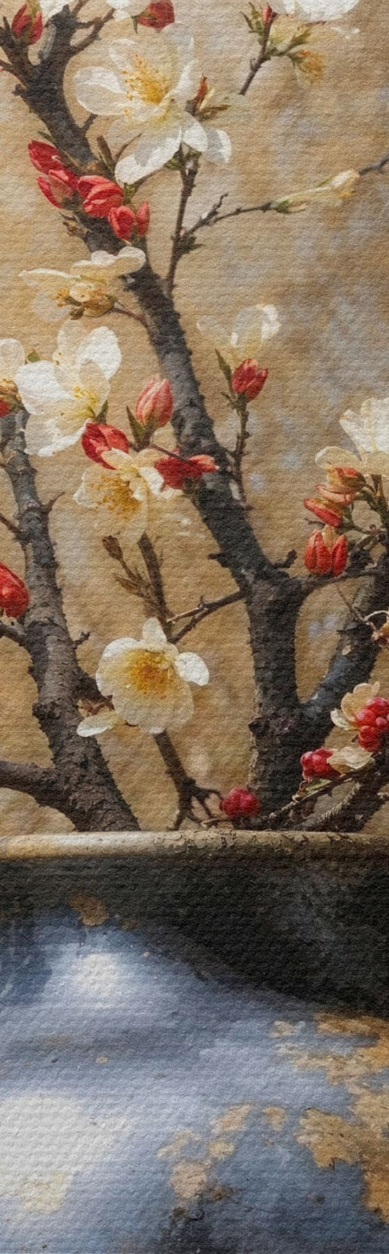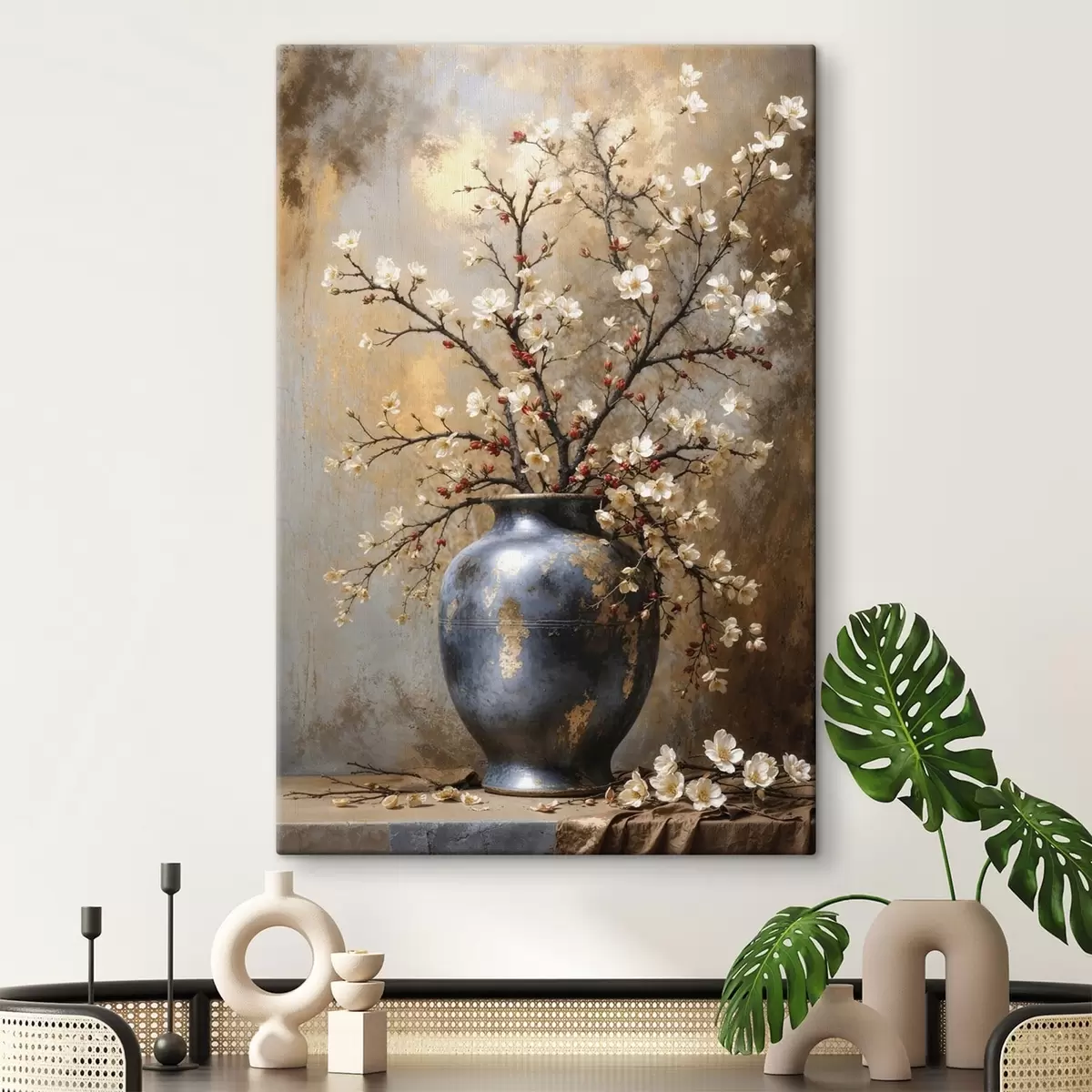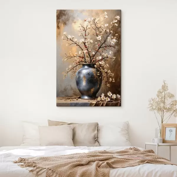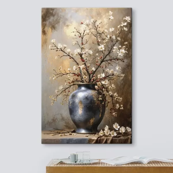 Maalid Õitsvad oksad vaasis neutraalsel taustal Nr s48361