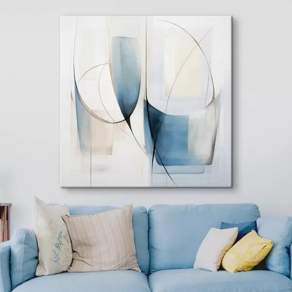 Maalid Abstraktne minimalistlik kompositsioon siniste ja beežide kujunditega Nr s48403
