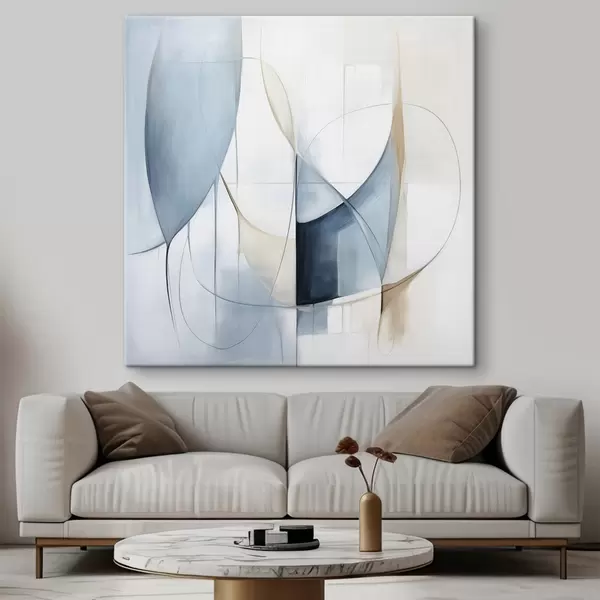 Maalid Abstraktne minimalistlik kompositsioon siniste ja beežide kujunditega Nr s48404