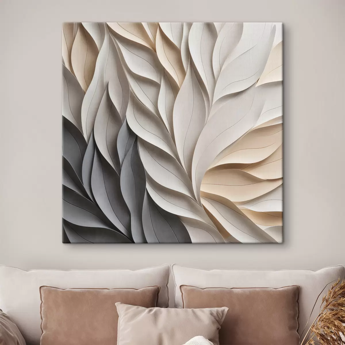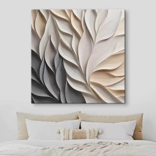 Maalid Tekstuuriga üksteisega kattuvad abstraktsed lehekujud neutraalsetes beeži, kreemi ja halli toonides Nr s48407