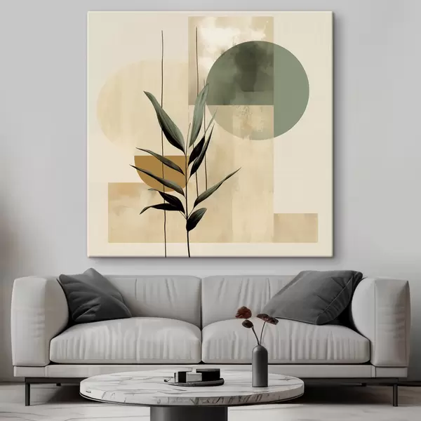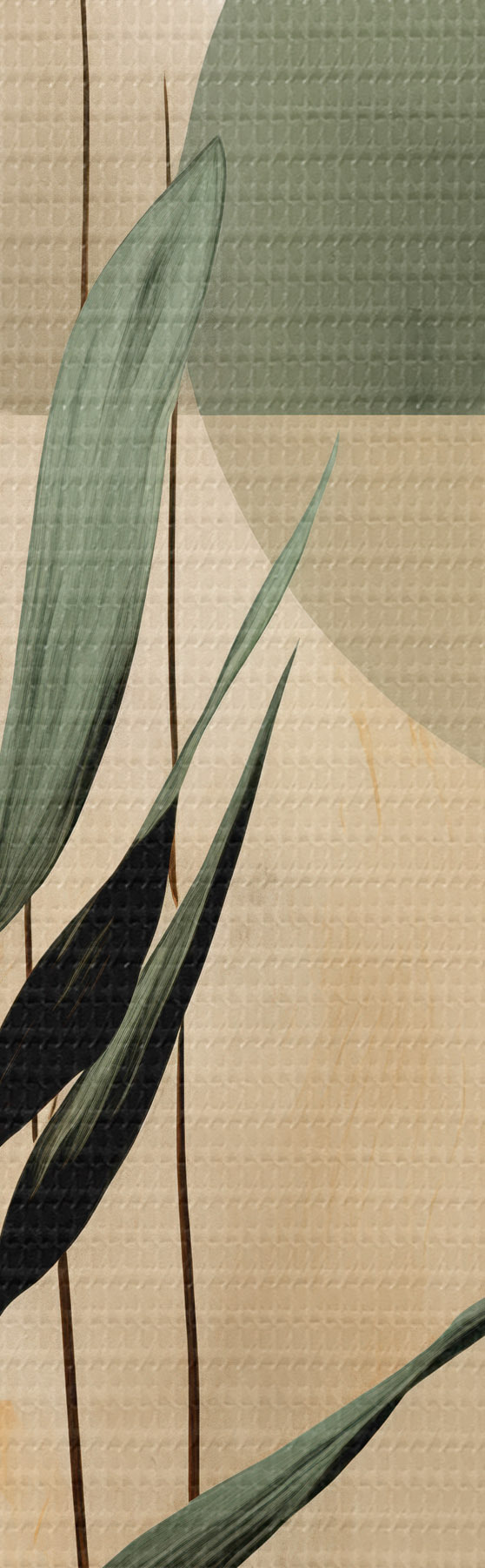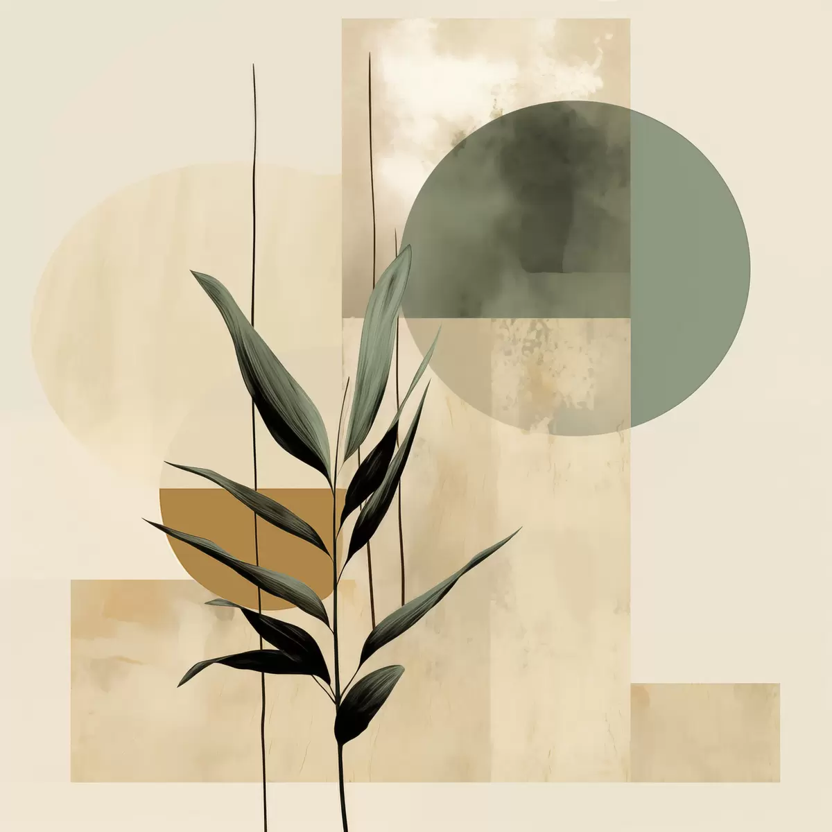 Maalid Tumeroheline taim, millel on abstraktsed geomeetrilised kujundid ning beeži ja rohelised akvarelltekstuurid Nr s48409