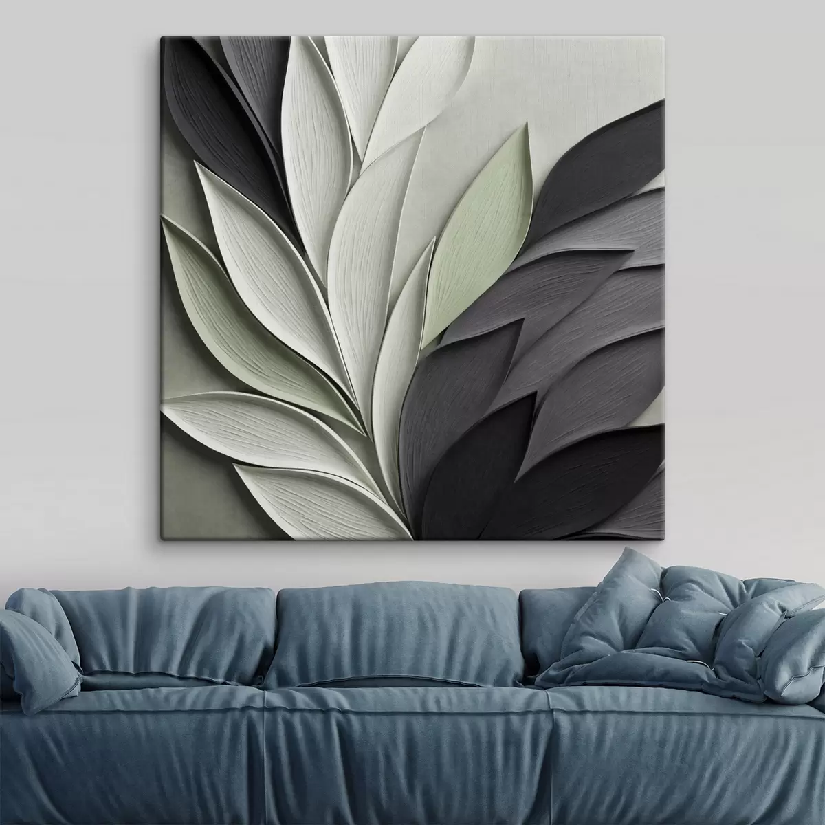 Maalid Abstraktsed stiliseeritud lehed halli, valge ja maheda rohelise toonides Nr s48411