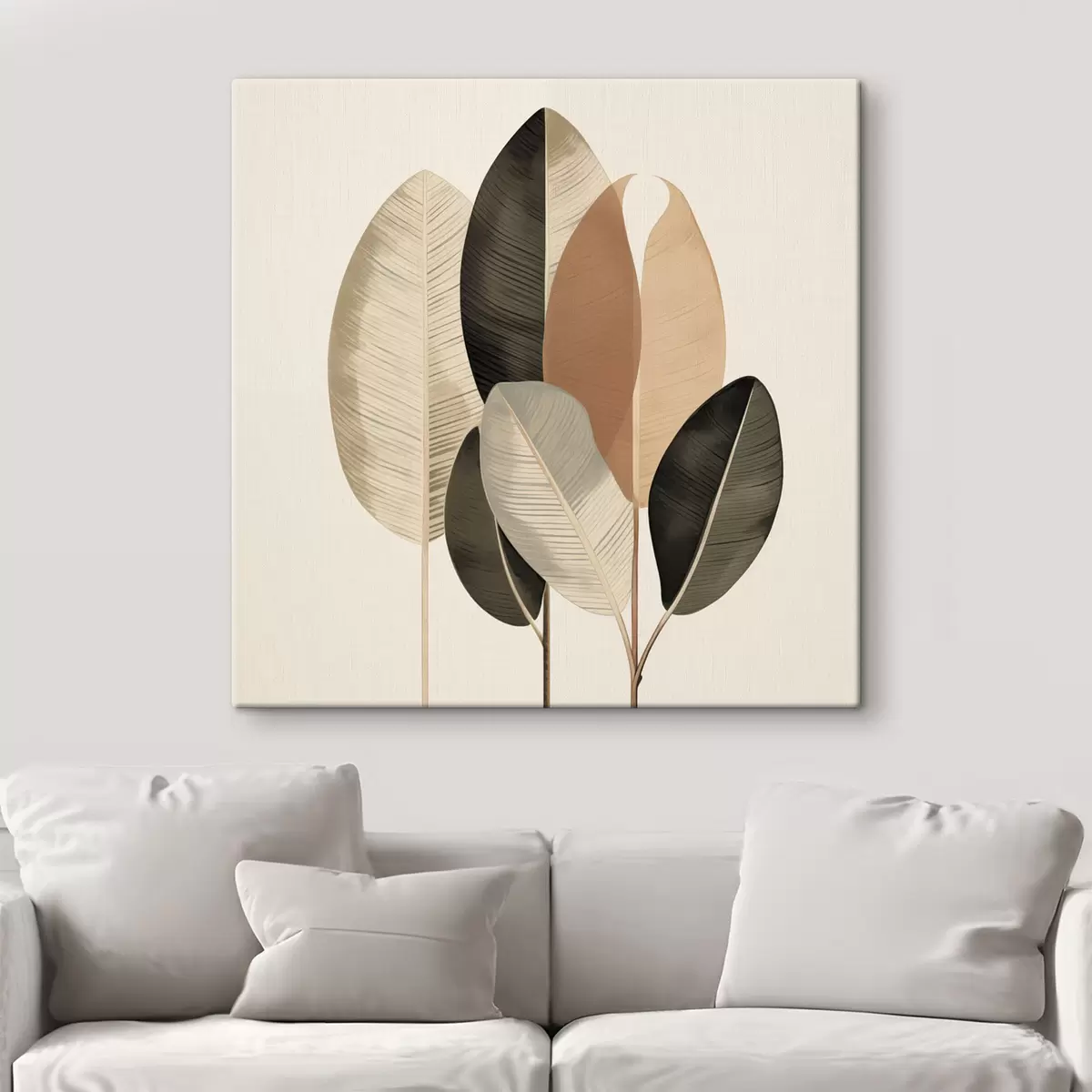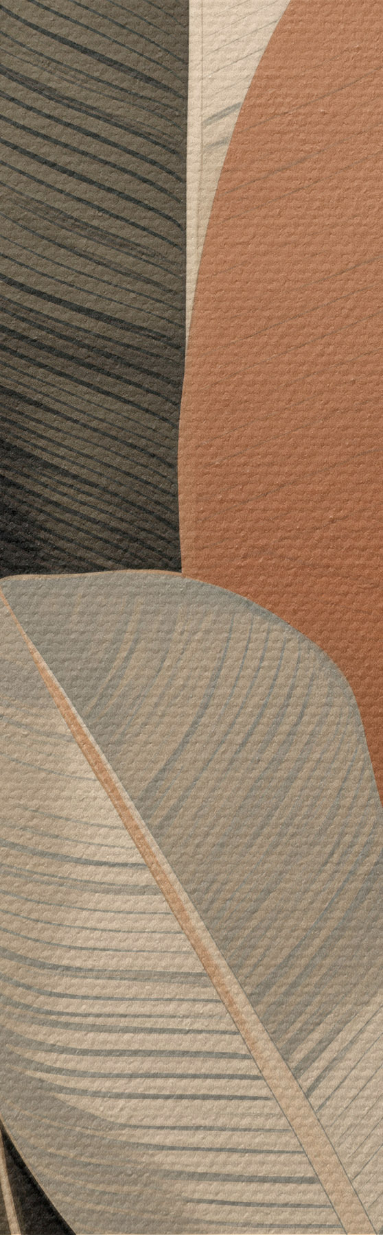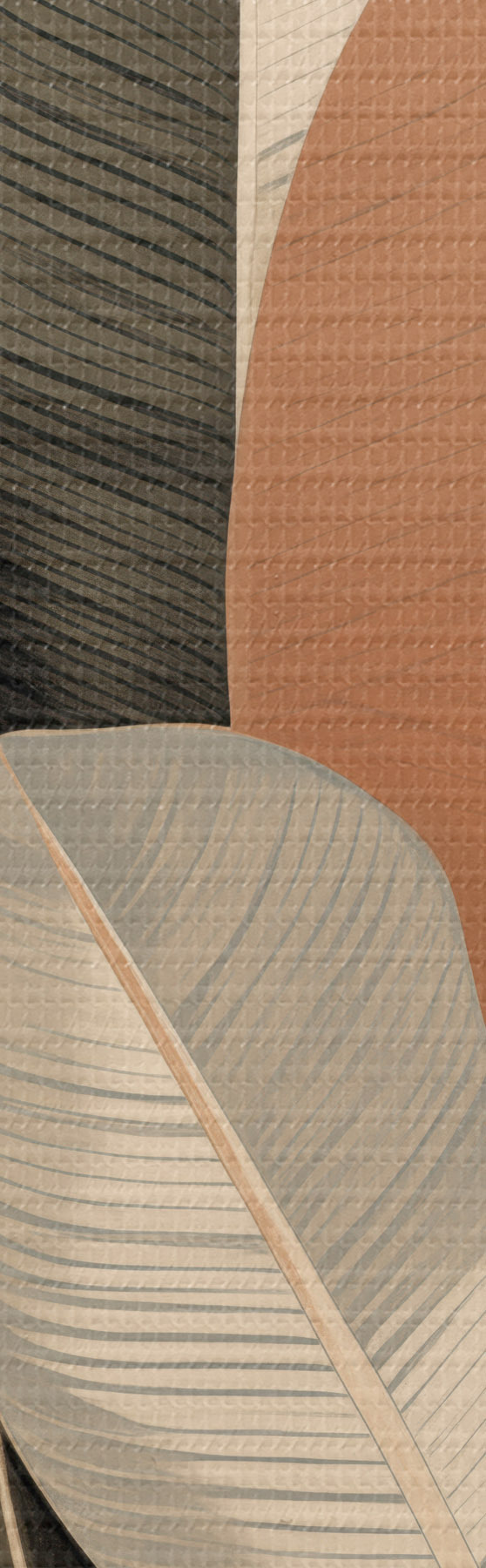Maalid Kõrged taimed ovaalsete lehtedega, tagasihoidlikes toonides ja abstraktsete ristkülikukujuliste mustritega Nr s48414