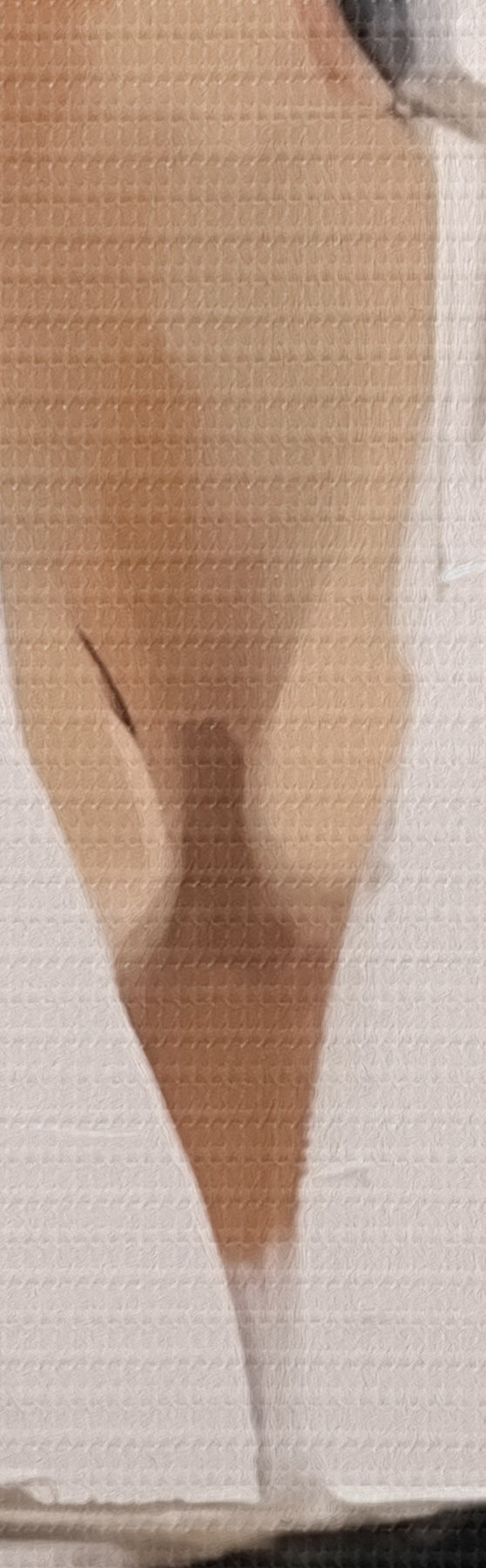 Selle lõuendi peenike niidipunus meenutab professionaalse kunstniku lõuendi pinda.