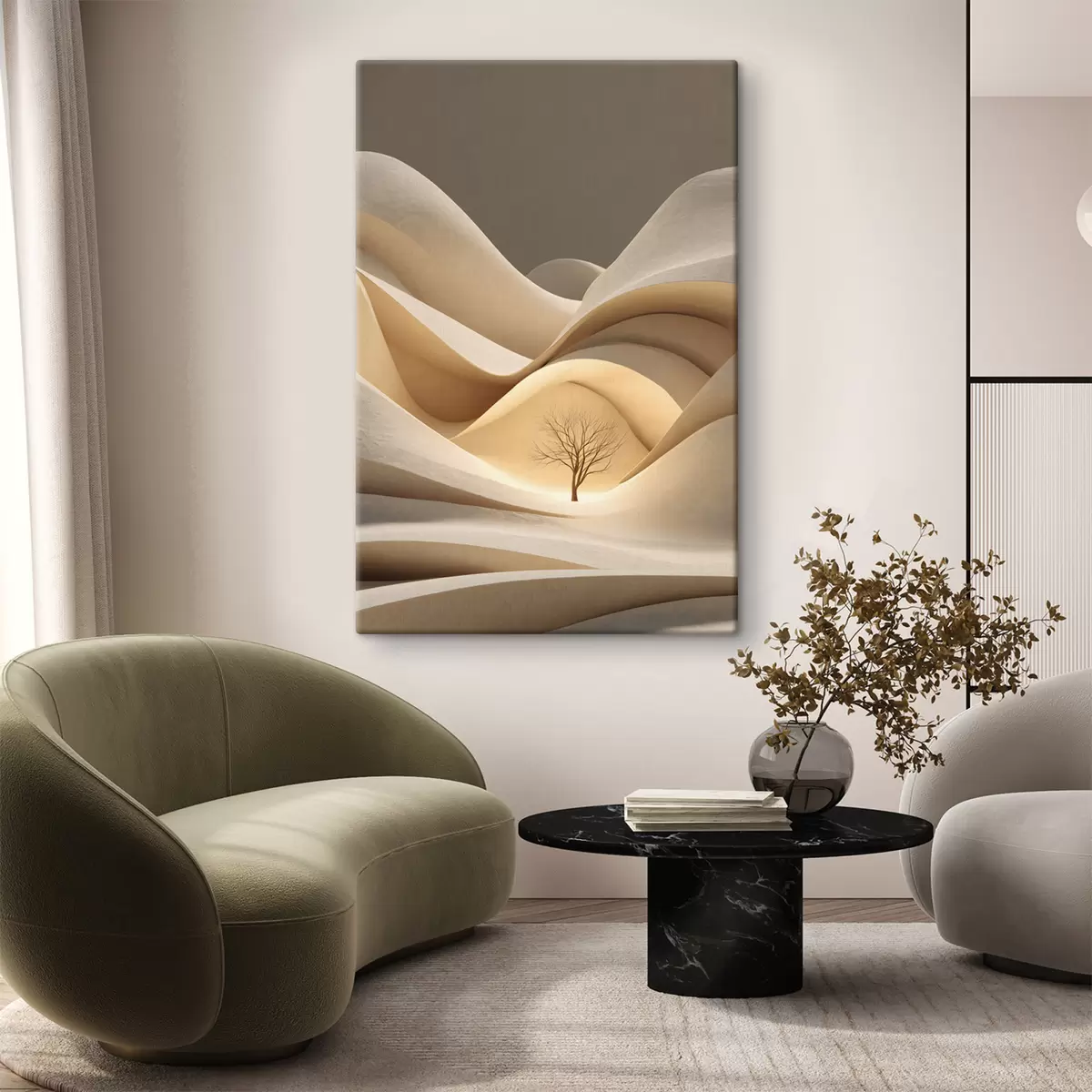 Maalid sürrealistlik maastik, kus kasvab puu Nr s48529