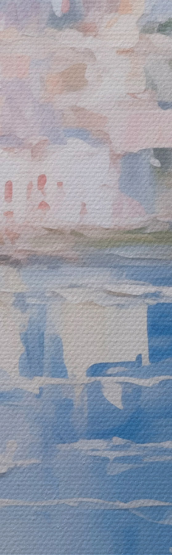 Selle lõuendi peenike niidipunus meenutab professionaalse kunstniku lõuendi pinda.