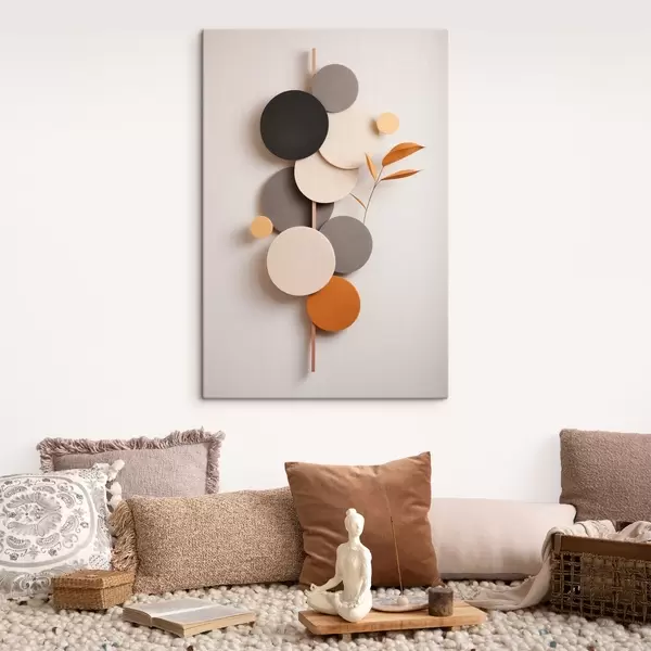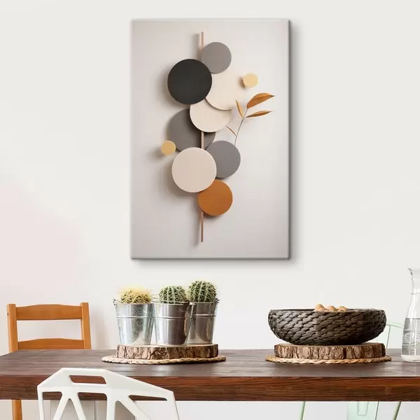 Maalid Abstraktsed ringid lehtedega neutraalsetes toonides Nr s48602