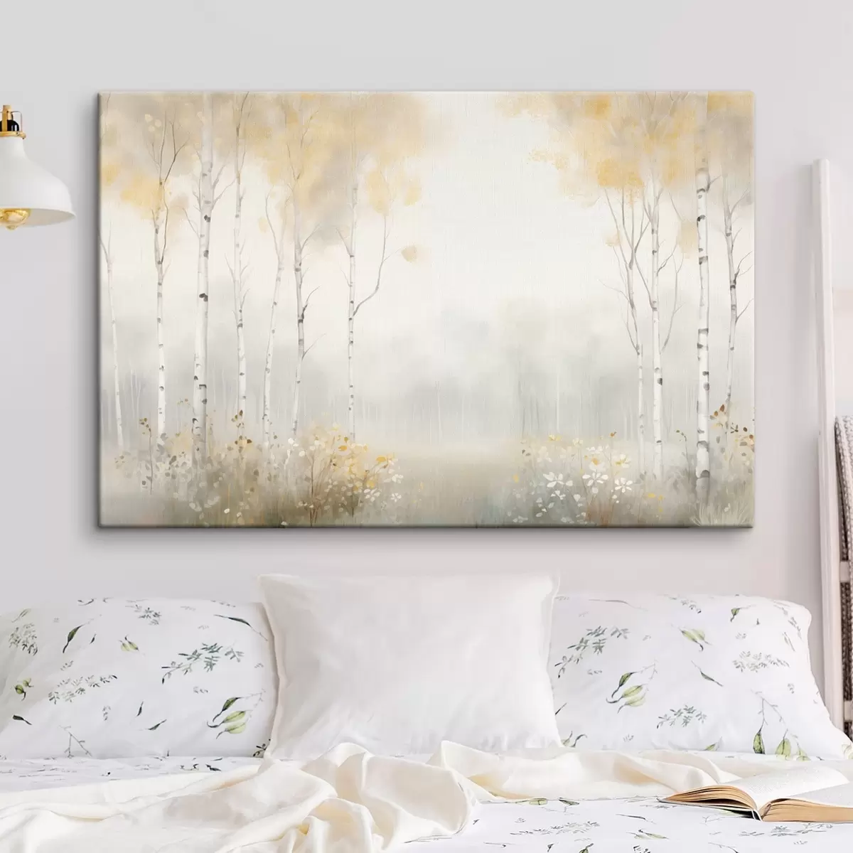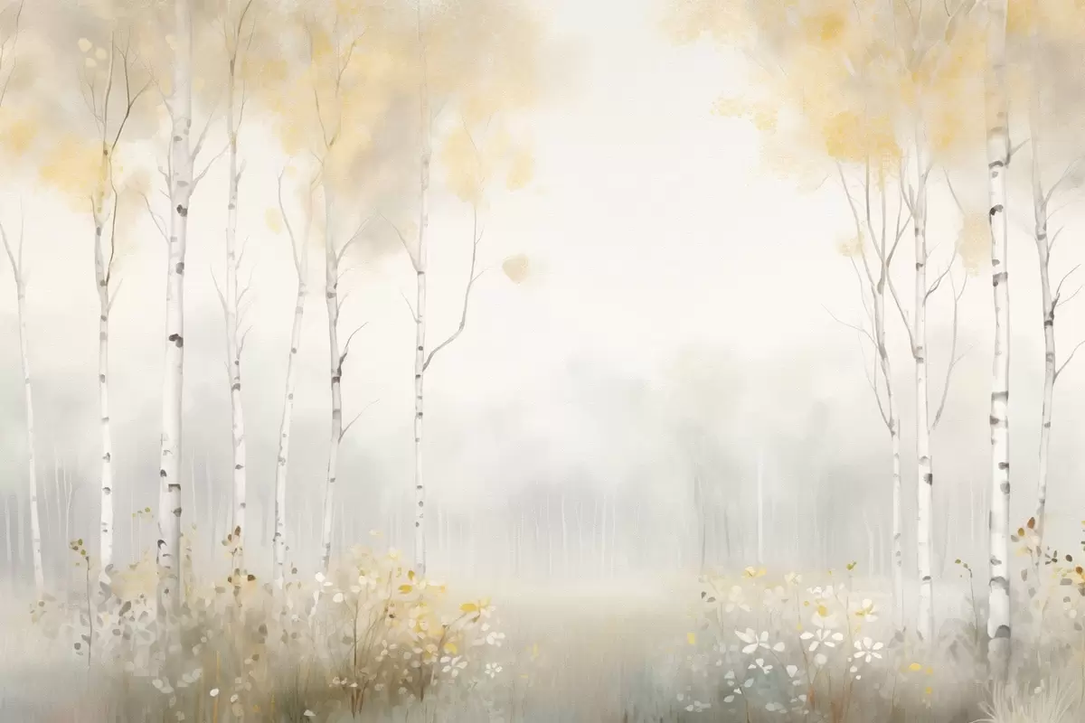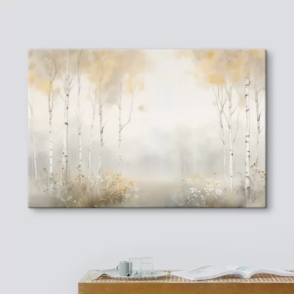 Maalid Uduhõlmas asuv hõredate puude mets, pehmed heledad toonid Nr s48623