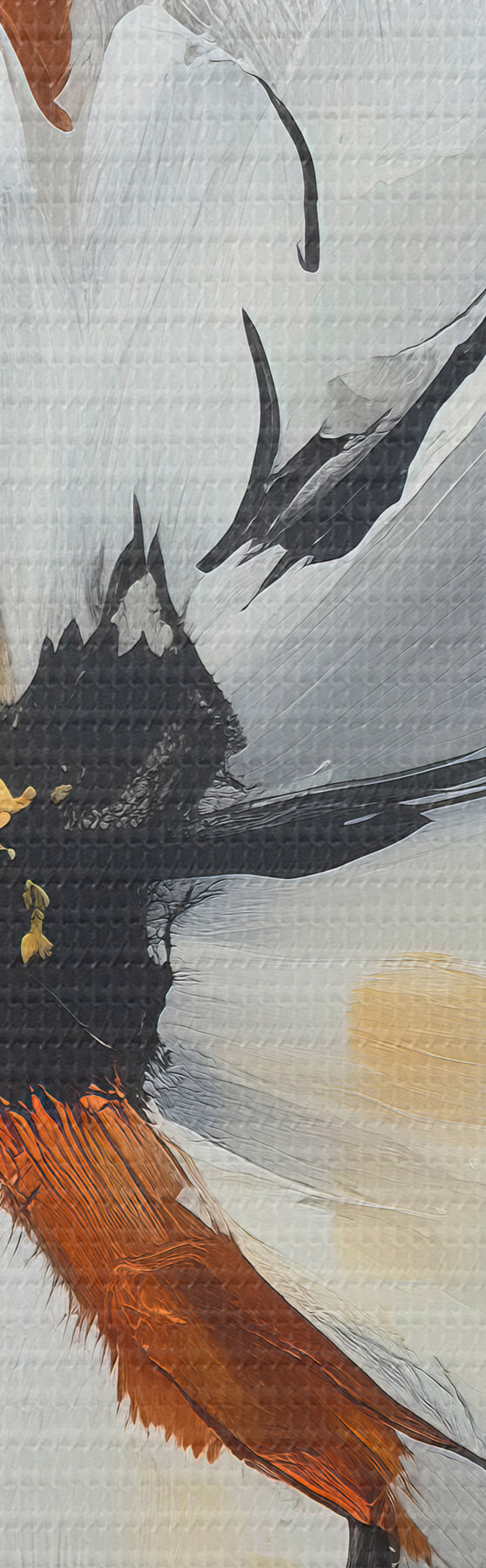 Selle lõuendi peenike niidipunus meenutab professionaalse kunstniku lõuendi pinda.