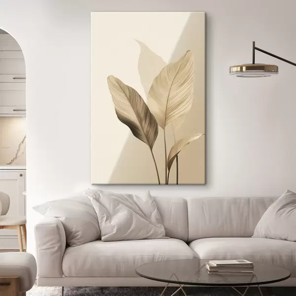 Maalid Suured troopilised lehed beeži ja pruuni toonides, hele taust Nr s48726