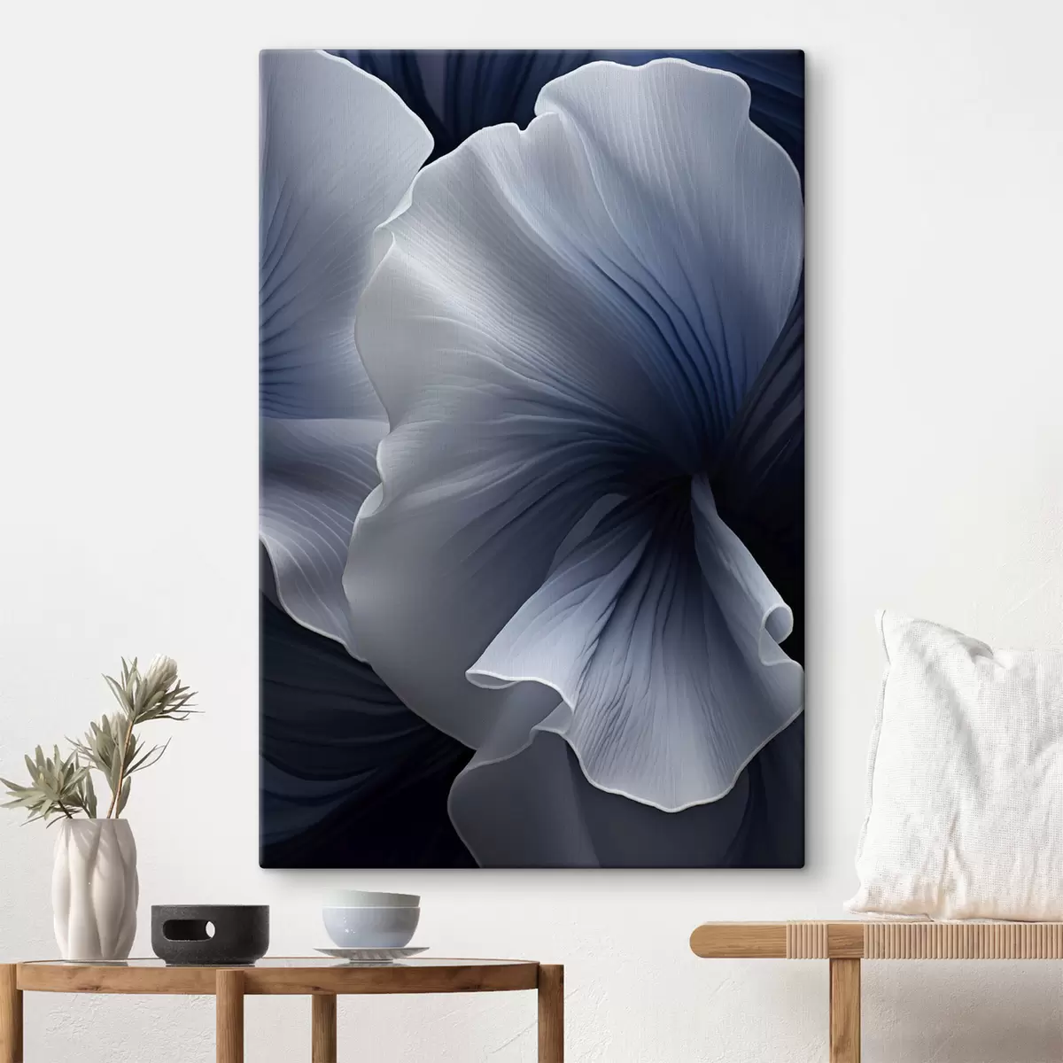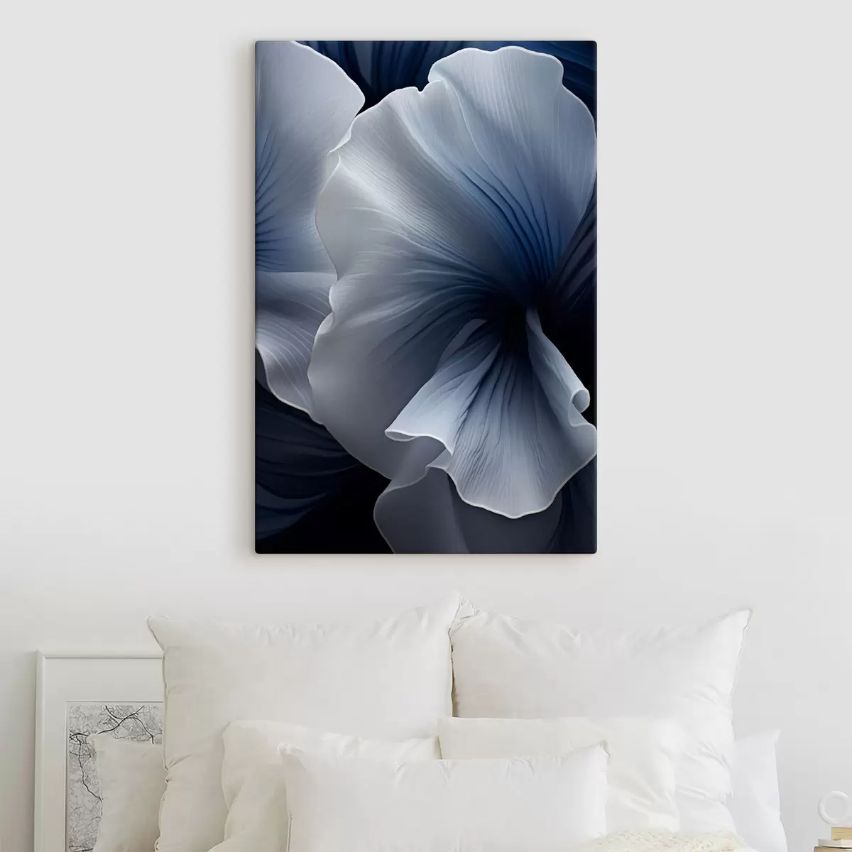 Maalid Abstraktsed sinised ja valged õielehed tumedal taustal Nr s48731