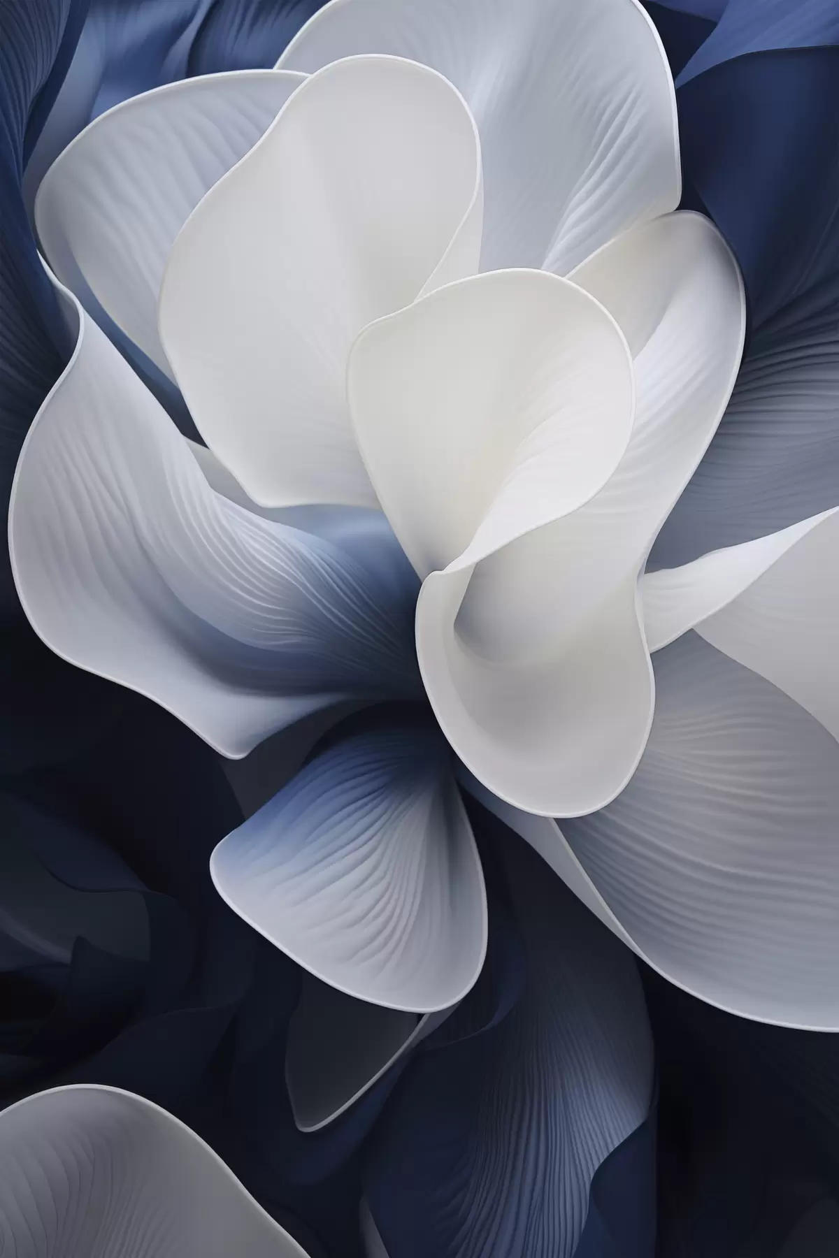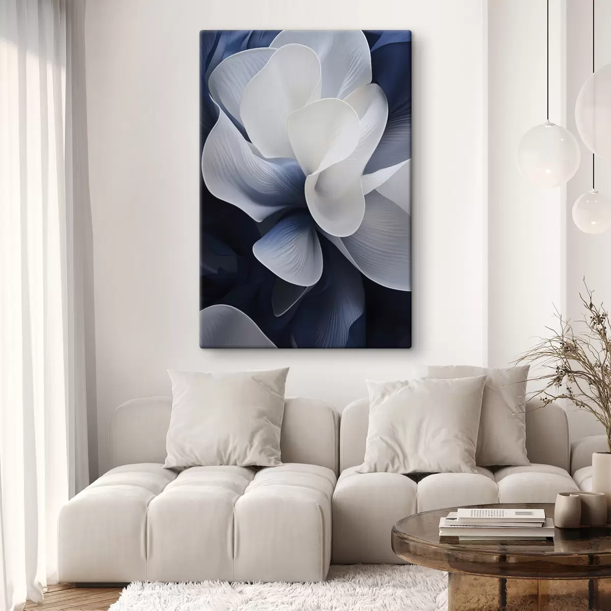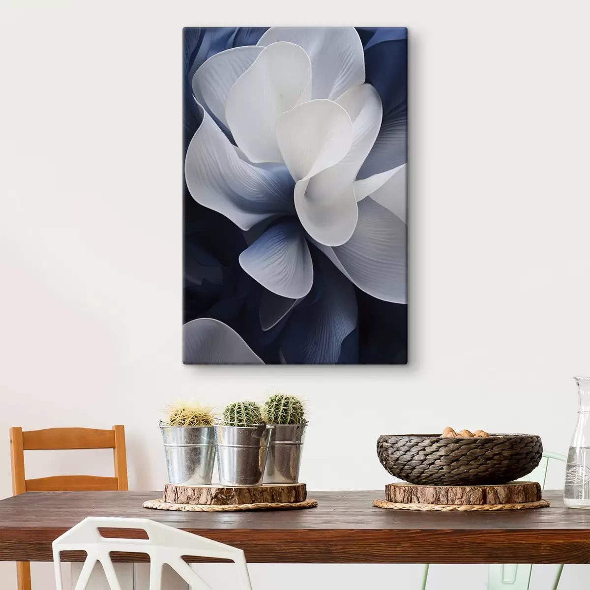 Maalid Abstraktsed sinised ja valged õielehed tumedal taustal Nr s48732