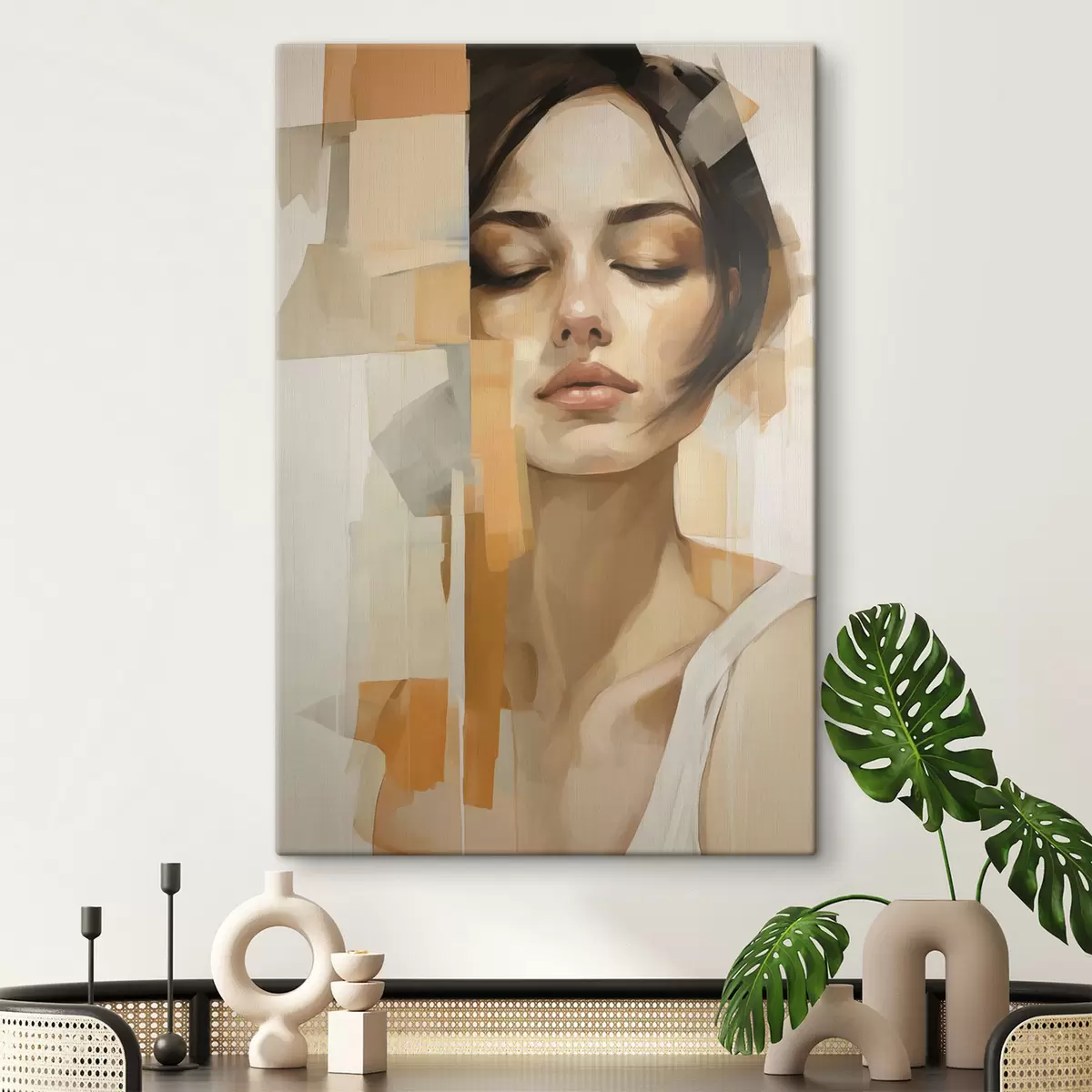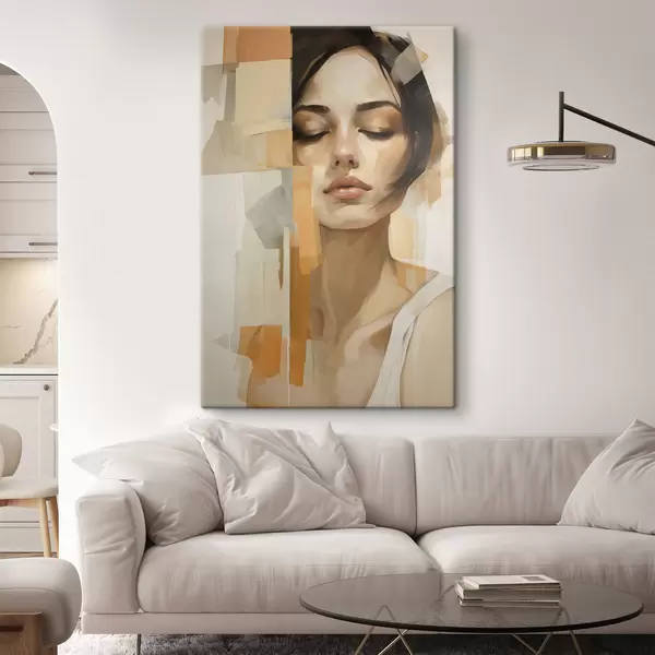 Maalid Abstraktne naisportree oranžide ja beežide kujunditega Nr s48736