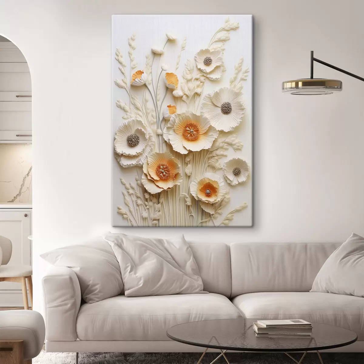 Maalid Kreemikate ja oranžide moonide kimp kuivatatud nisuvartega Nr s48747