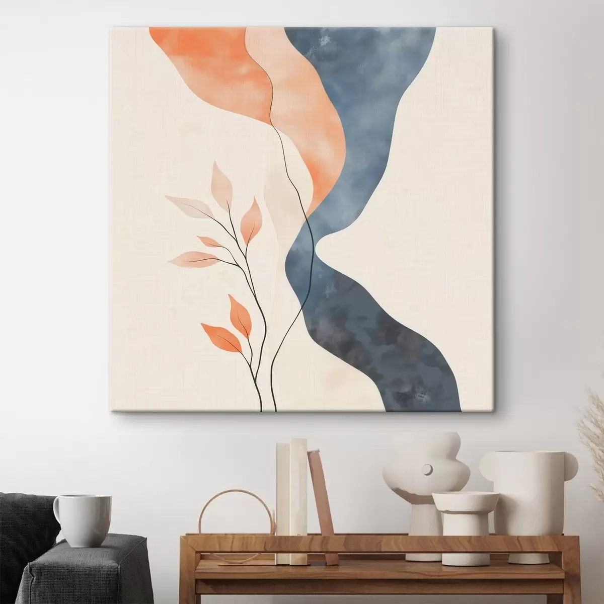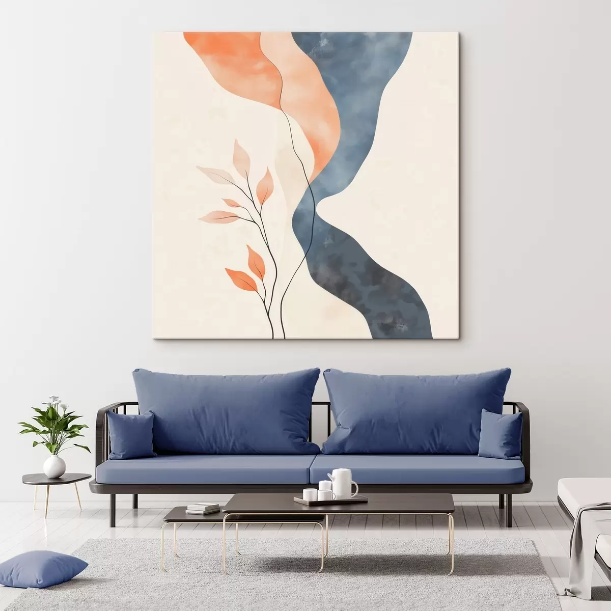 Maalid Lilleseade voolavate joontega sinise ja oranži värvipalettis Nr s48837