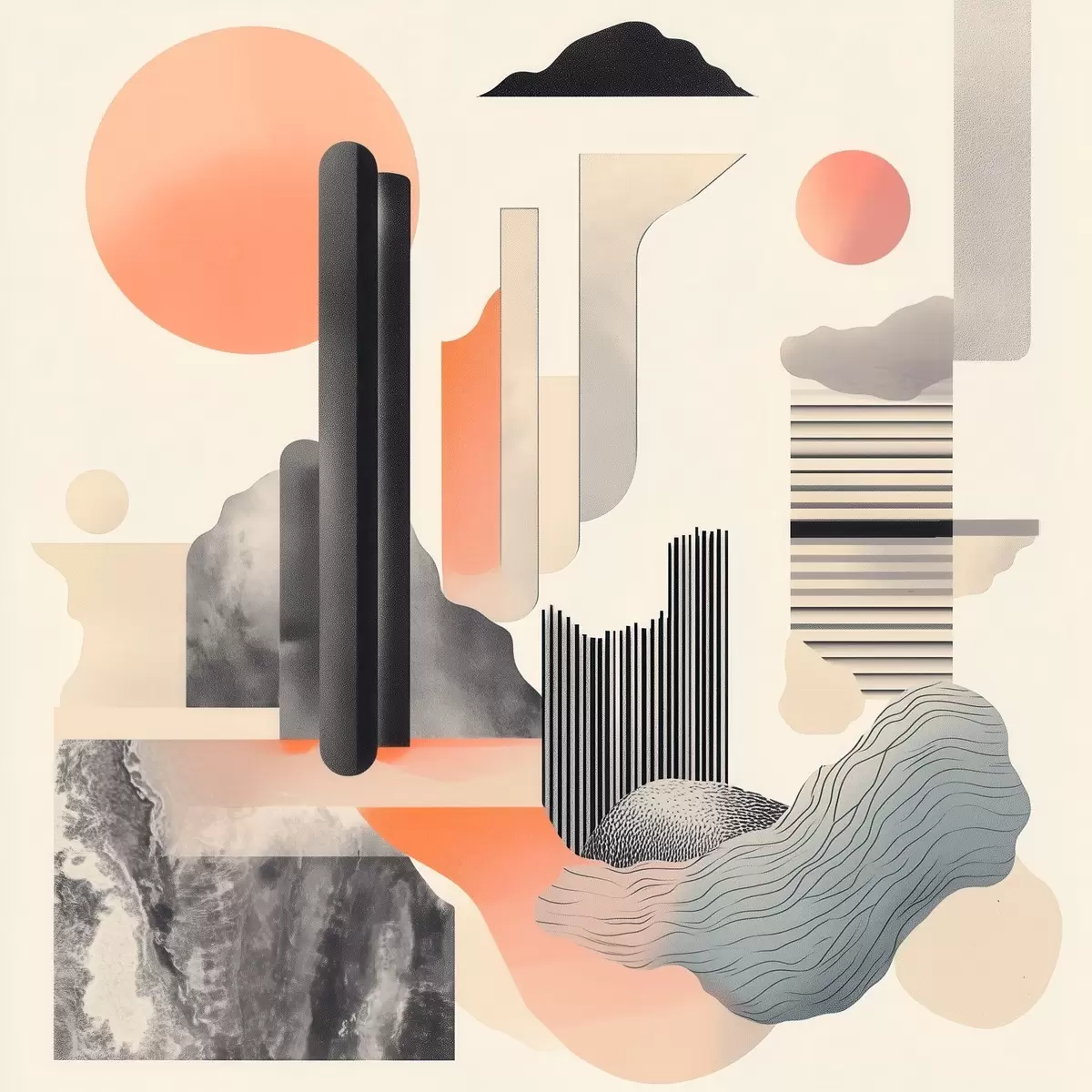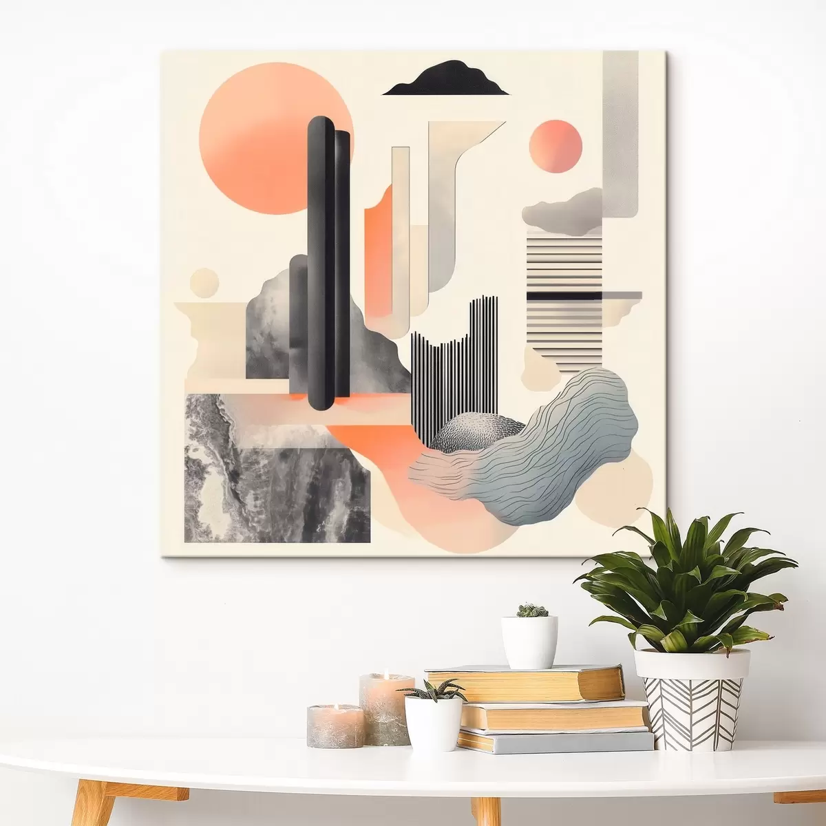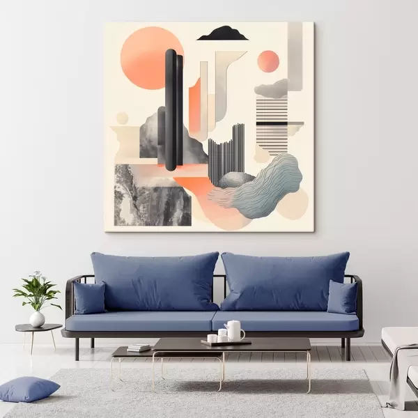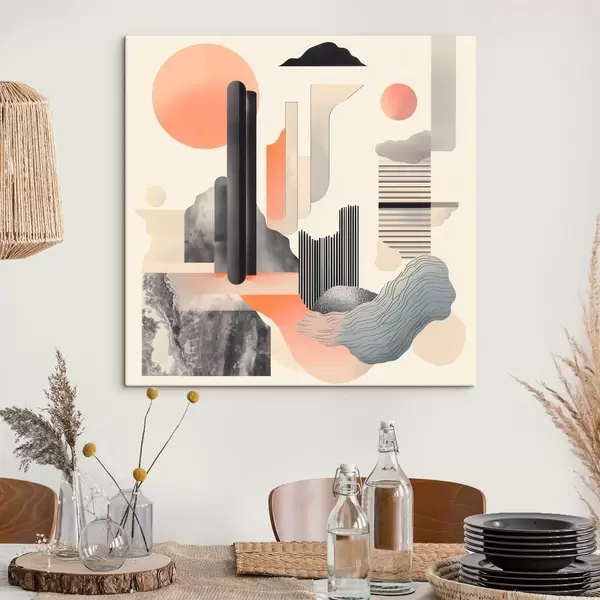 Maalid Geomeetriline kompositsioon virsiku-halli värvipalettiga kaasaegses maalikunstistiilis Nr s48841