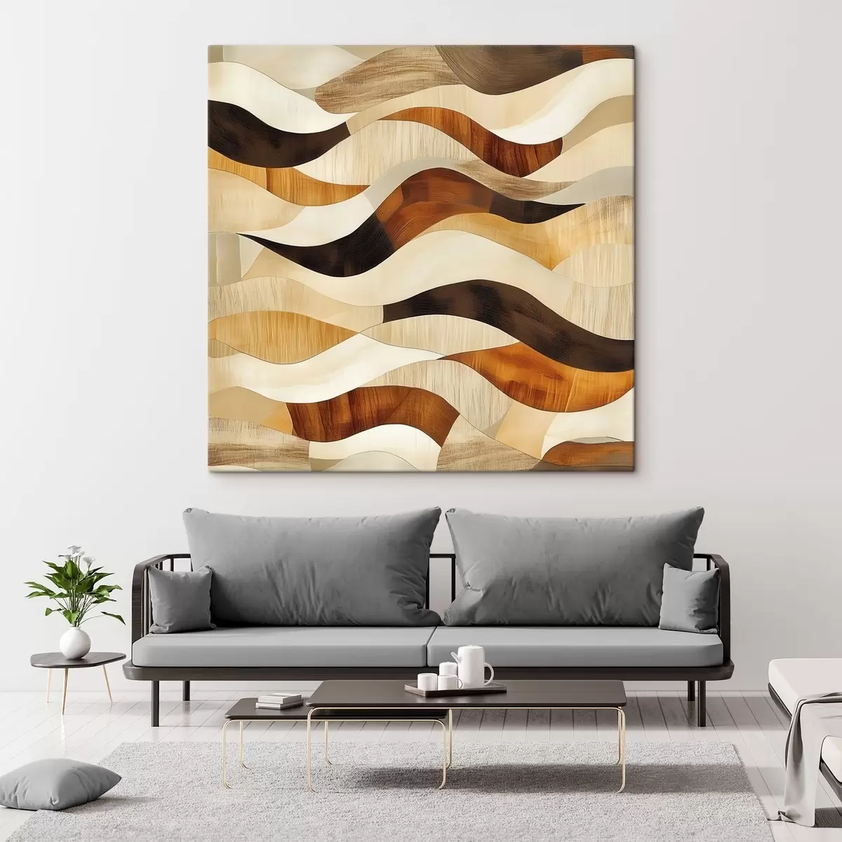 Maalid Orgaaniliste joonte ja looduslike puidutoonide esteetika kunstilises plakatistiilis Nr s48852
