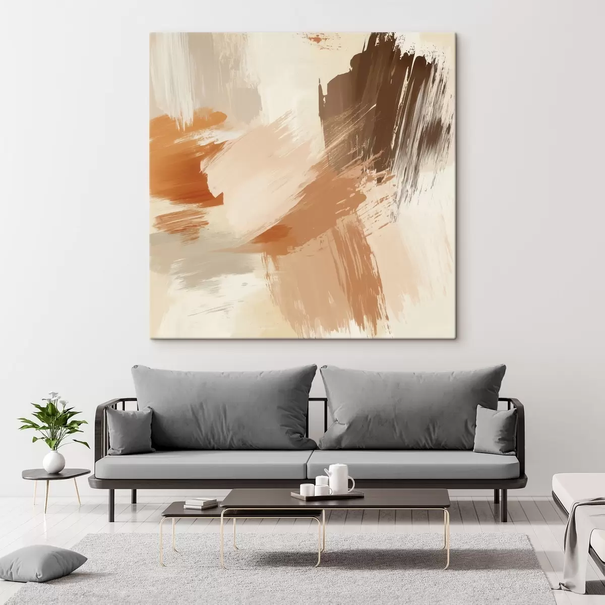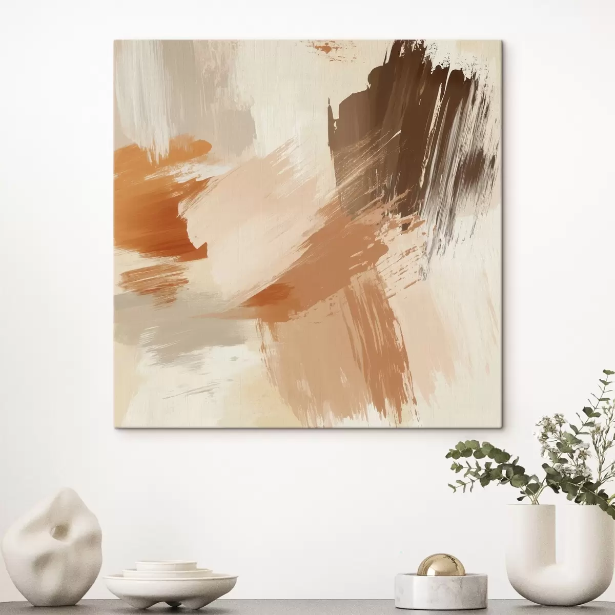 Maalid Liivaste ja pruunide toonidega abstraktsete pintslitõmbedega imitatsioon Nr s48857