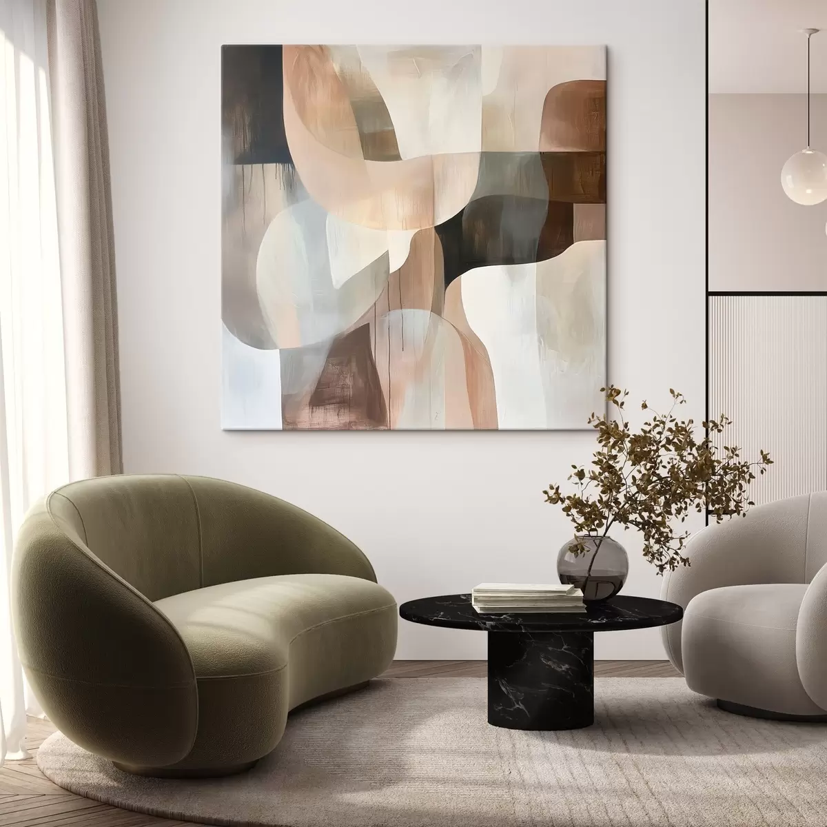 Maalid Abstraktne kompositsioon soojas beež-korallitoonides Nr s48859