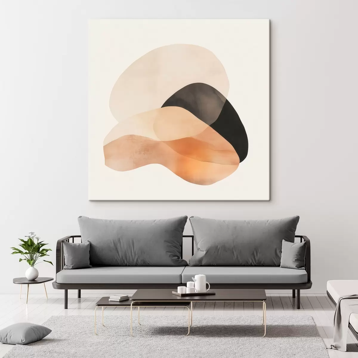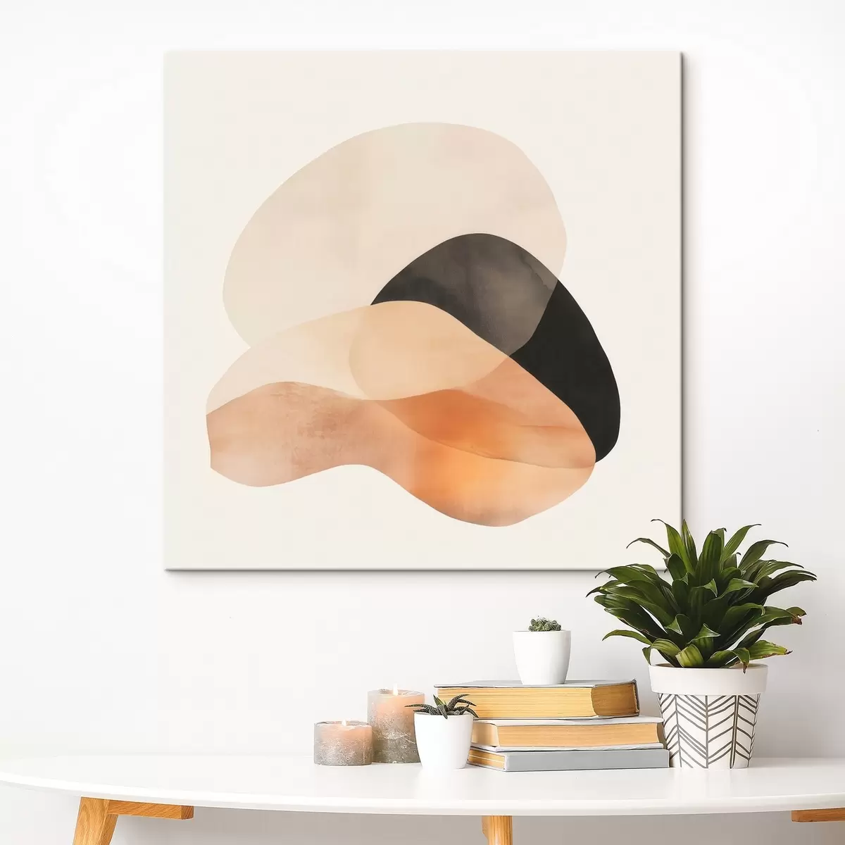 Maalid Minimalistlikus stiilis abstraktsed kujundid beež-virsiku värvipalettis tumedate aksentidega Nr s48863