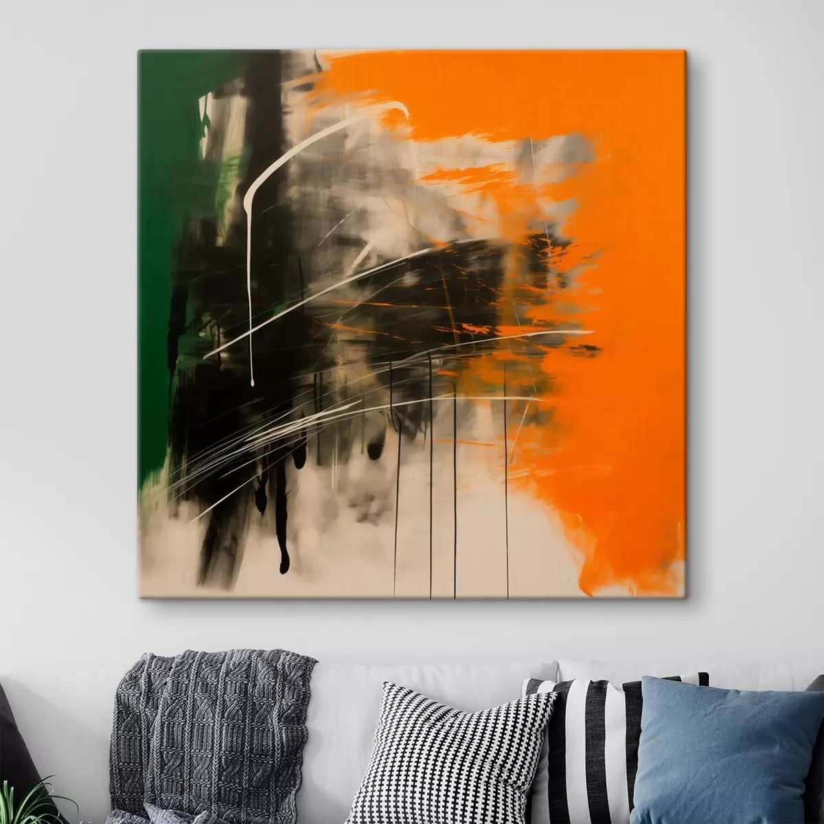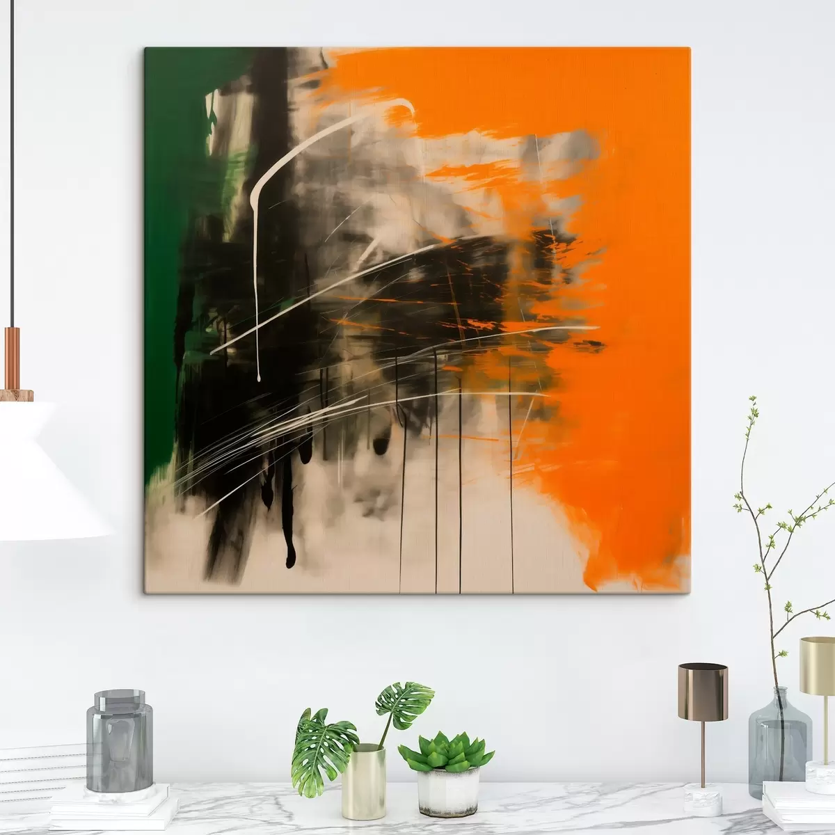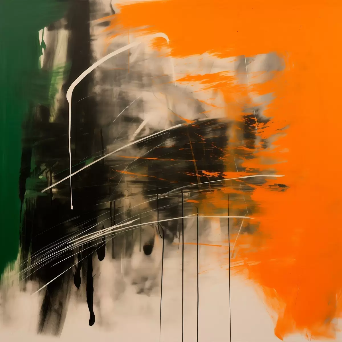 Maalid Abstraktsioon oranžide ja roheliste pintslitõmmetega kaasaegses maalikunstistiilis Nr s48866