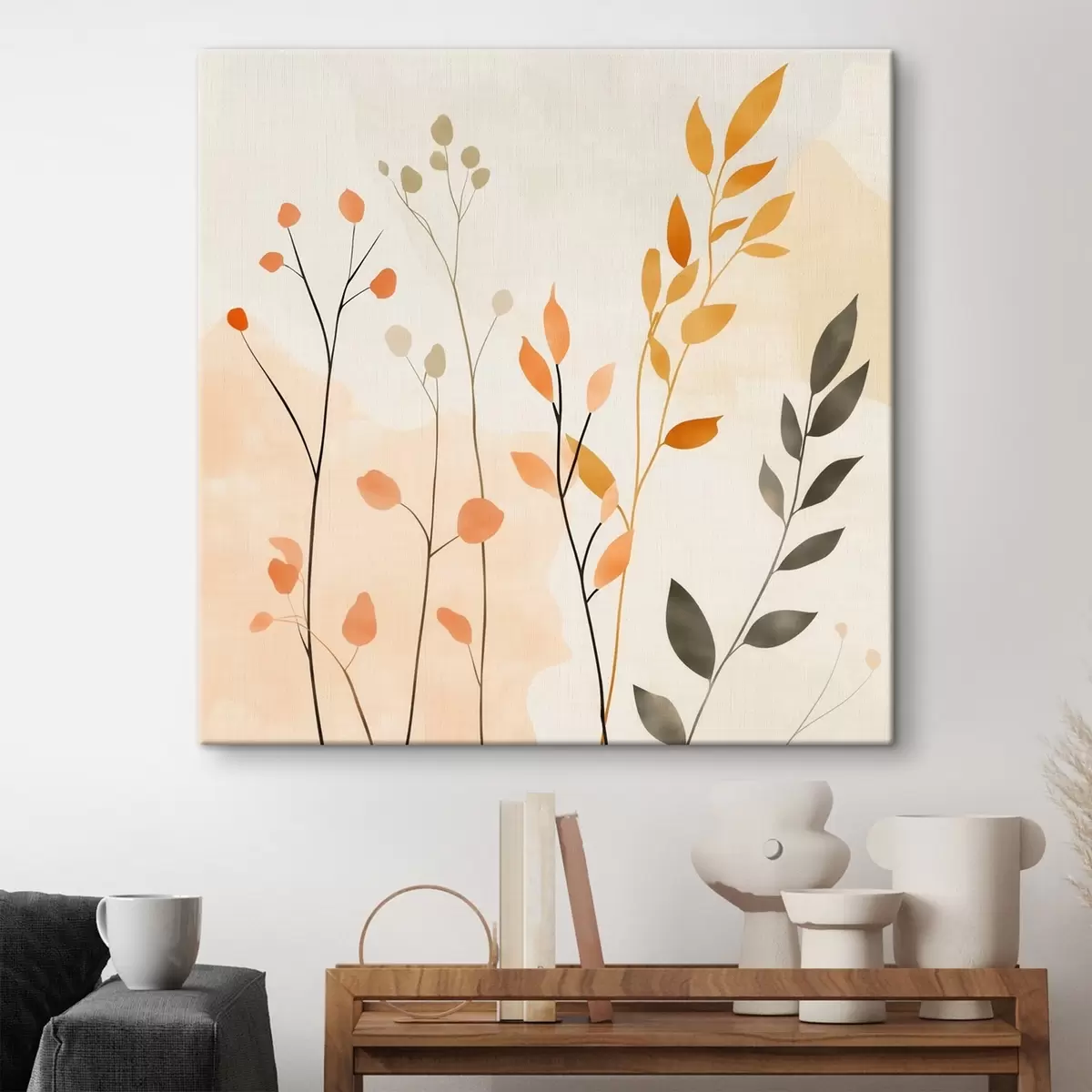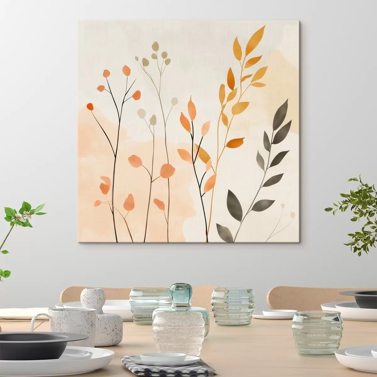 Maalid Pastellkompositsioon õrna lehtedega kaasaegses maalikunstistiilis Nr s48873