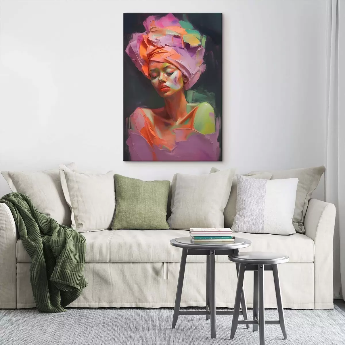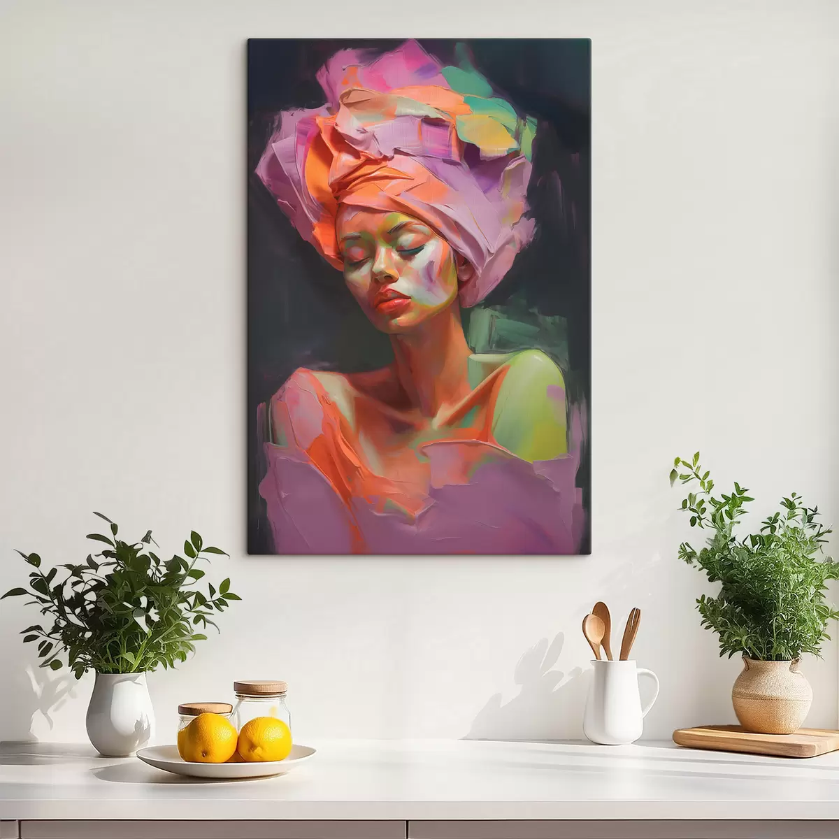 Maali võib riputada kohe pärast selle kättesaamist. Maal on pingutatud 2 cm laiusele puidust kandikule.
